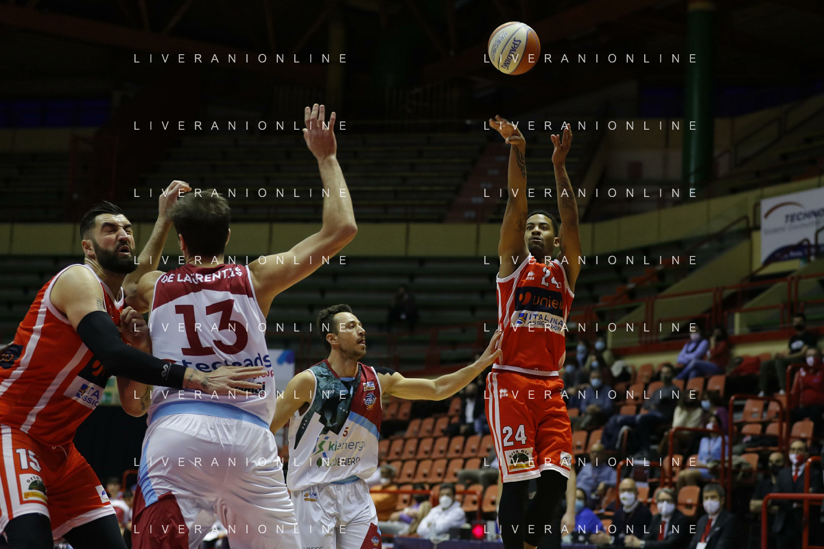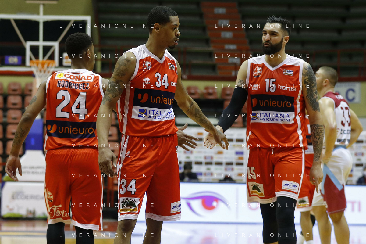 Unieuro Forlì vs N.P.C. Rieti - Campionato di Basket A2 - 03/03/2021 nella foto: Rodriguez Yancarlos Roderick Terrence Landi Aristide ©Claudio Zamagni/Agenzia Aldo Liverani