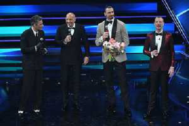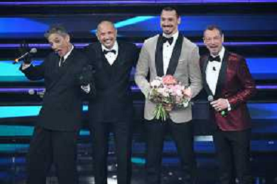 da SX Fiorello, Sinisa Mihajlovic, Zlatan Ibrahimovic e Amadeus 71mo Festival della Canzone Italiana Sanremo 2021 - Terza Serata Teatro Ariston - Sanremo (IM) 04-03-2021 foto Roberto Garavaglia/ag. Aldo Liverani sas