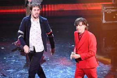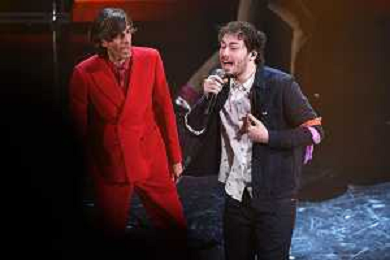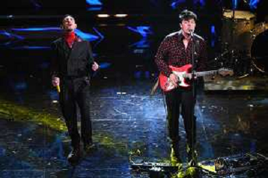 Random SX e Antonio Stash Fiordispino DX voce dei The Kolors 71mo Festival della Canzone Italiana Sanremo 2021 - Terza Serata Teatro Ariston - Sanremo (IM) 04-03-2021 foto Roberto Garavaglia/ag. Aldo Liverani sas