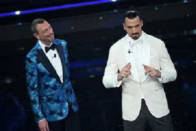 Amadeus e Zlatan Ibrahimovic 71mo Festival della Canzone Italiana Sanremo 2021 - Quarta Serata Teatro Ariston - Sanremo (IM) 05-03-2021 foto Roberto Garavaglia/ag. Aldo Liverani sas / AGENZIA ALDO LIVERANI SAS