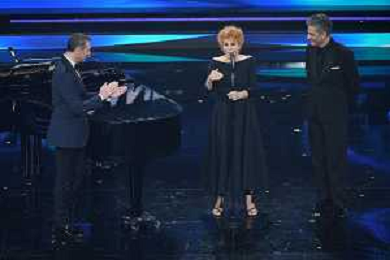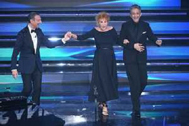 Ornella Vanoni con Amadeus SX e Fiorello DX 71mo Festival della Canzone Italiana Sanremo 2021 - Quinta Serata Teatro Ariston - Sanremo (IM) 06-03-2021 foto Roberto Garavaglia/ag. Aldo Liverani sas