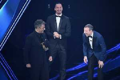 Zlatan Ibrahimovic con Fiorello e Amadeus 71mo Festival della Canzone Italiana Sanremo 2021 - Quinta Serata Teatro Ariston - Sanremo (IM) 06-03-2021 foto Roberto Garavaglia/ag. Aldo Liverani sas