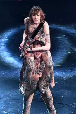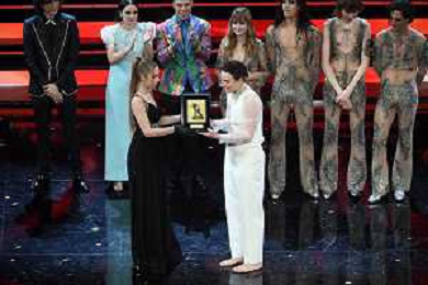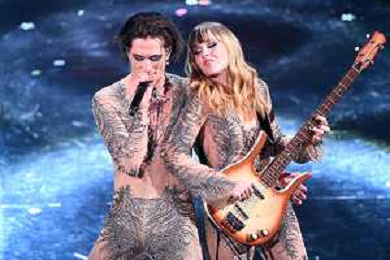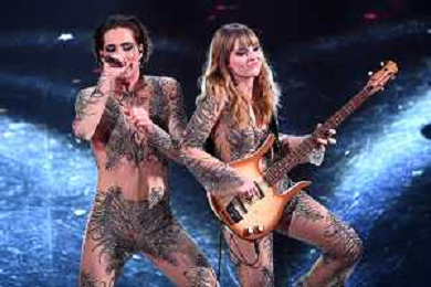 Damiano David SX e Victoria De Angelis DX rispettivamente voce e bassista dei Maneskin 71mo Festival della Canzone Italiana Sanremo 2021 - Quinta Serata Teatro Ariston - Sanremo (IM) 06-03-2021 foto Roberto Garavaglia/ag. Aldo Liverani sas
