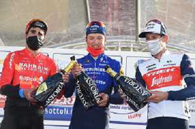 07-03-2021 Gp Industria E Artigianato - Larciano; 2021, Deceuninck - Quick Step; 2021, Trek - Segafredo; 2021, Bahrain - Victorious; Vansevenant, Mauri; Mollema, Bauke; Landa Meana, Mikel; Larciano;