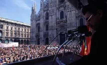 RETROSPETTIVA ACHILLE OCCHETTO POLITICO NELLA FOTO ACHILLE OCCHETTO NEL COMIZIO DI PIAZZA DUOMO NELL'ANNO 1987 AG ALDO LIVERANI SAS