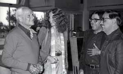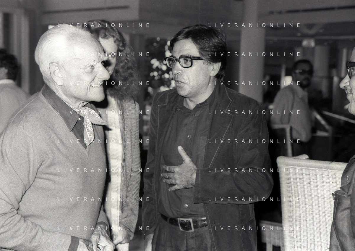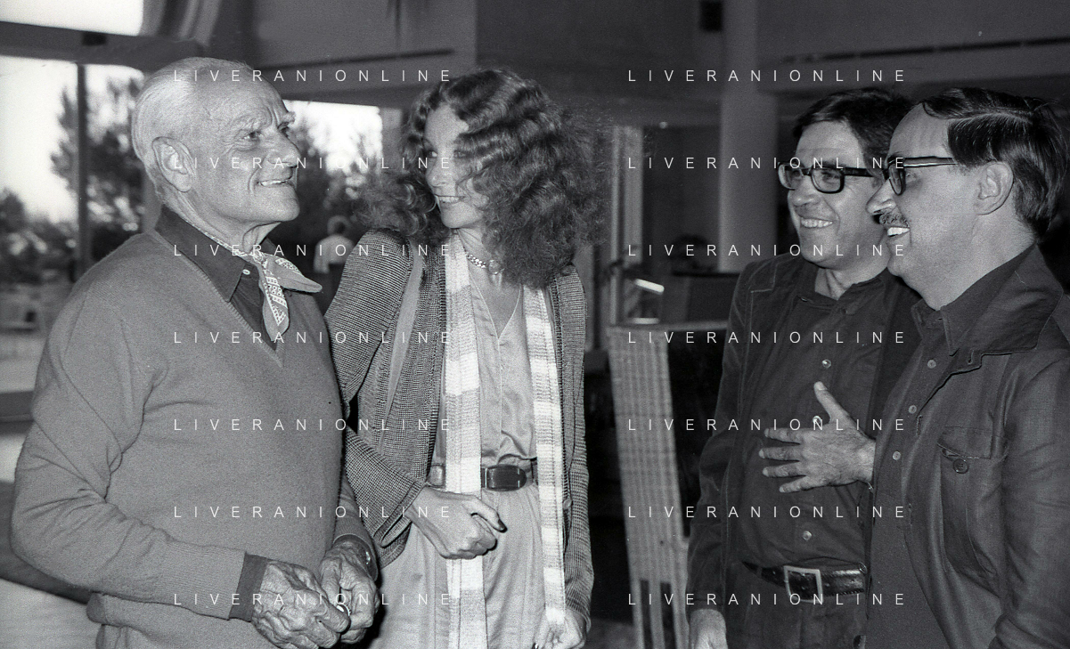 RETROSPETTIVA ALBERTO MORAVIA SCRITTORE NELLA FOTO ALBERTO MORAVIA CON ADRIANA SARTOGO E I FRATELLI PAOLO E VITTORIO TAVIANI A VENEZIA NELL'ANNO 1979 AG ALDO LIVERANI SAS