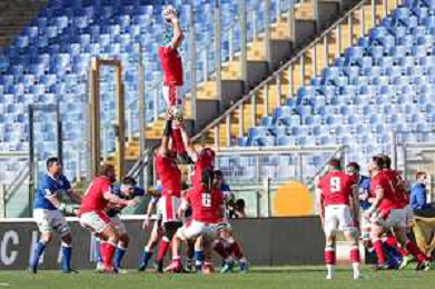 Marianiu/LMedia - 2021 Guinness Six Nations Rugby - Italy vs Wales - Rugby Six Nations match 13 March 2021 - Stadio Olimpico, rome, Italy Photo showing: touche Italy @Marianiu/LMedia AG ALDO LIVERANI SAS