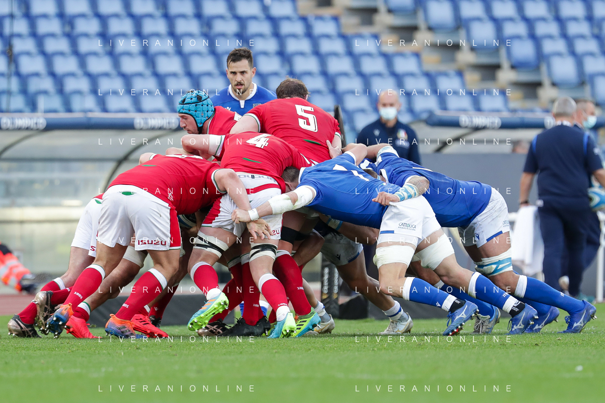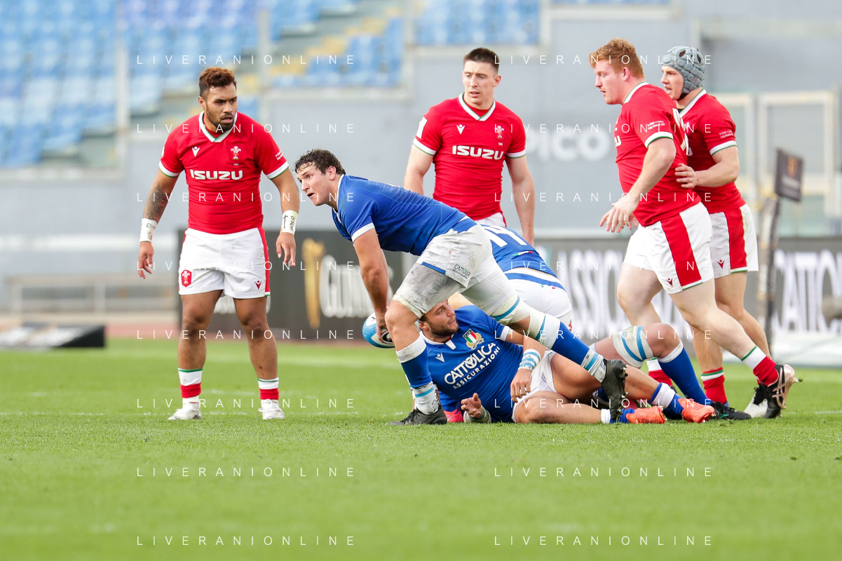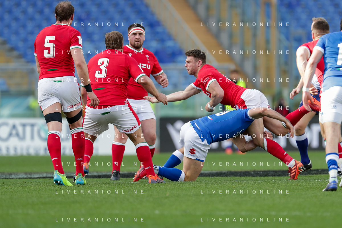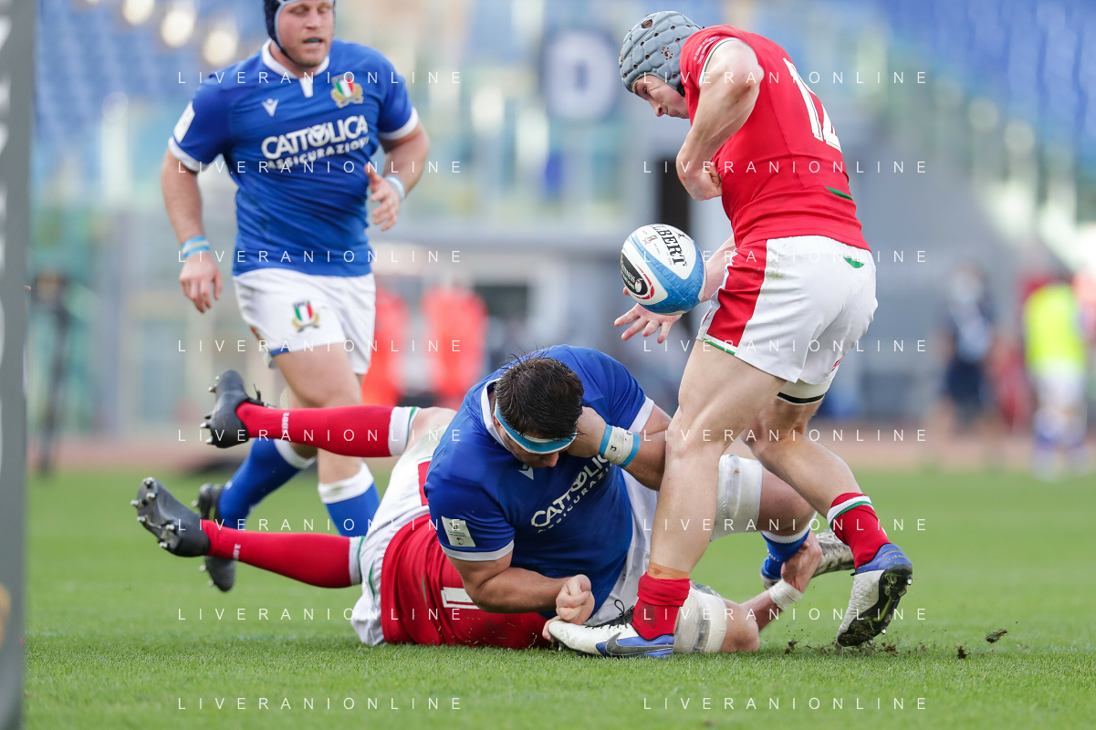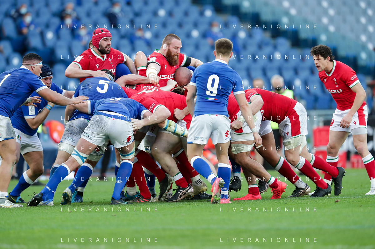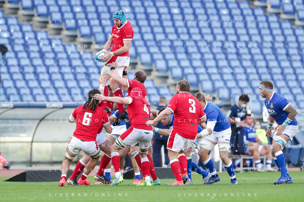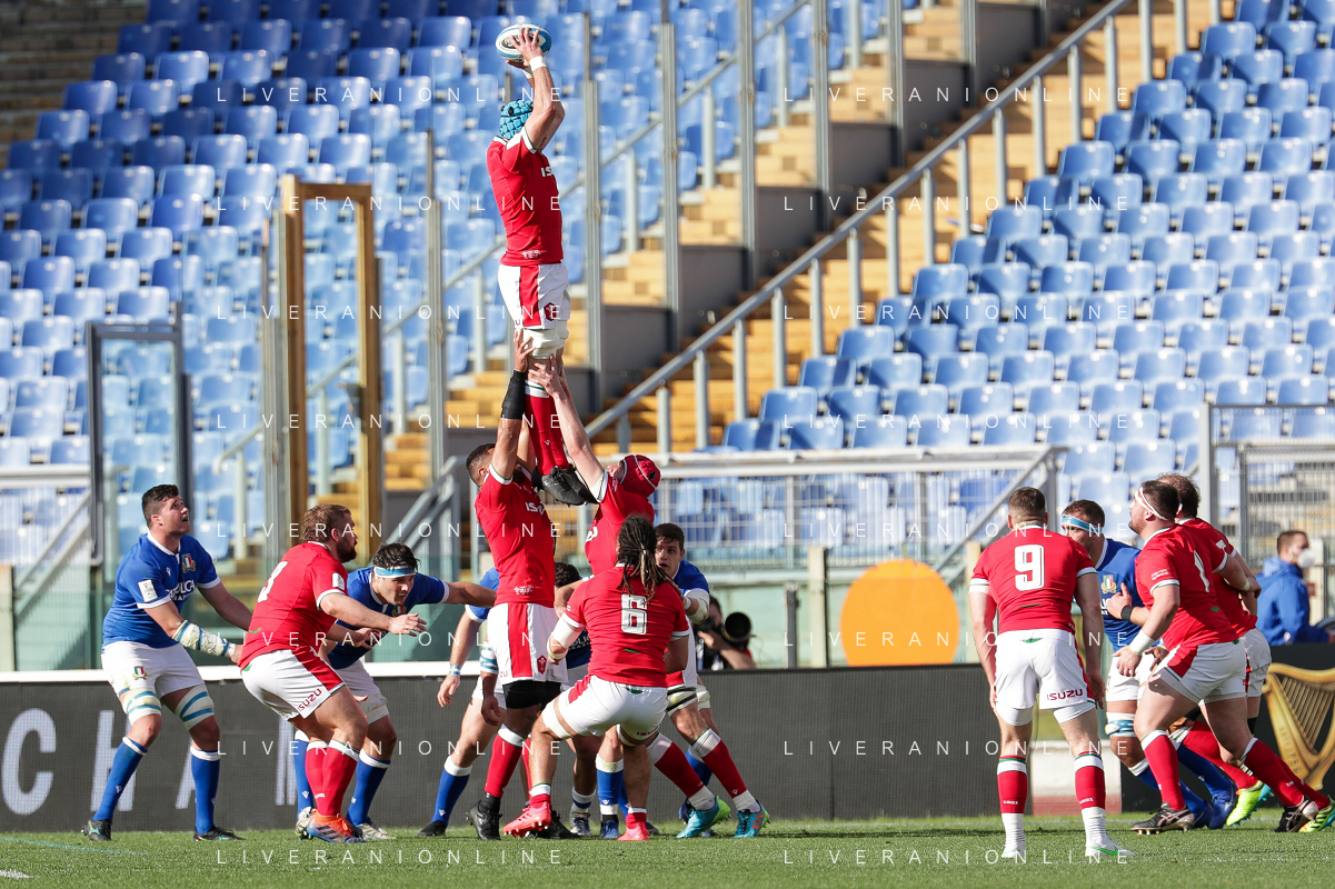 Marianiu/LMedia - 2021 Guinness Six Nations Rugby - Italy vs Wales - Rugby Six Nations match 13 March 2021 - Stadio Olimpico, rome, Italy Photo showing: touche Wales @Marianiu/LMedia AG ALDO LIVERANI SAS