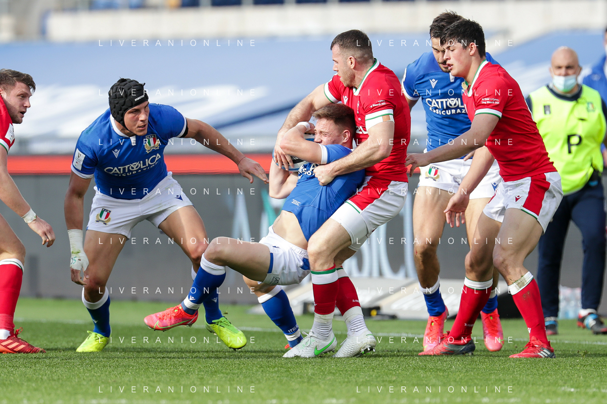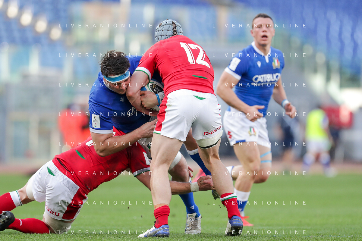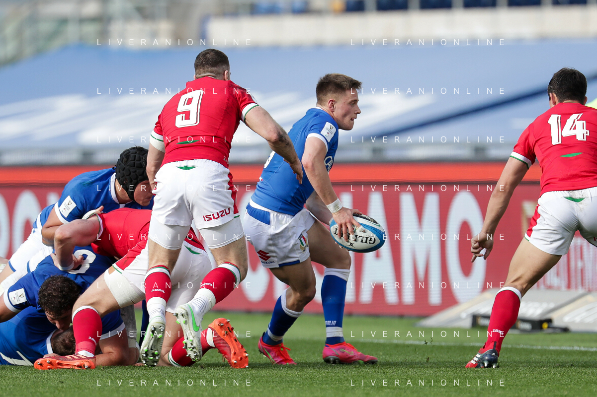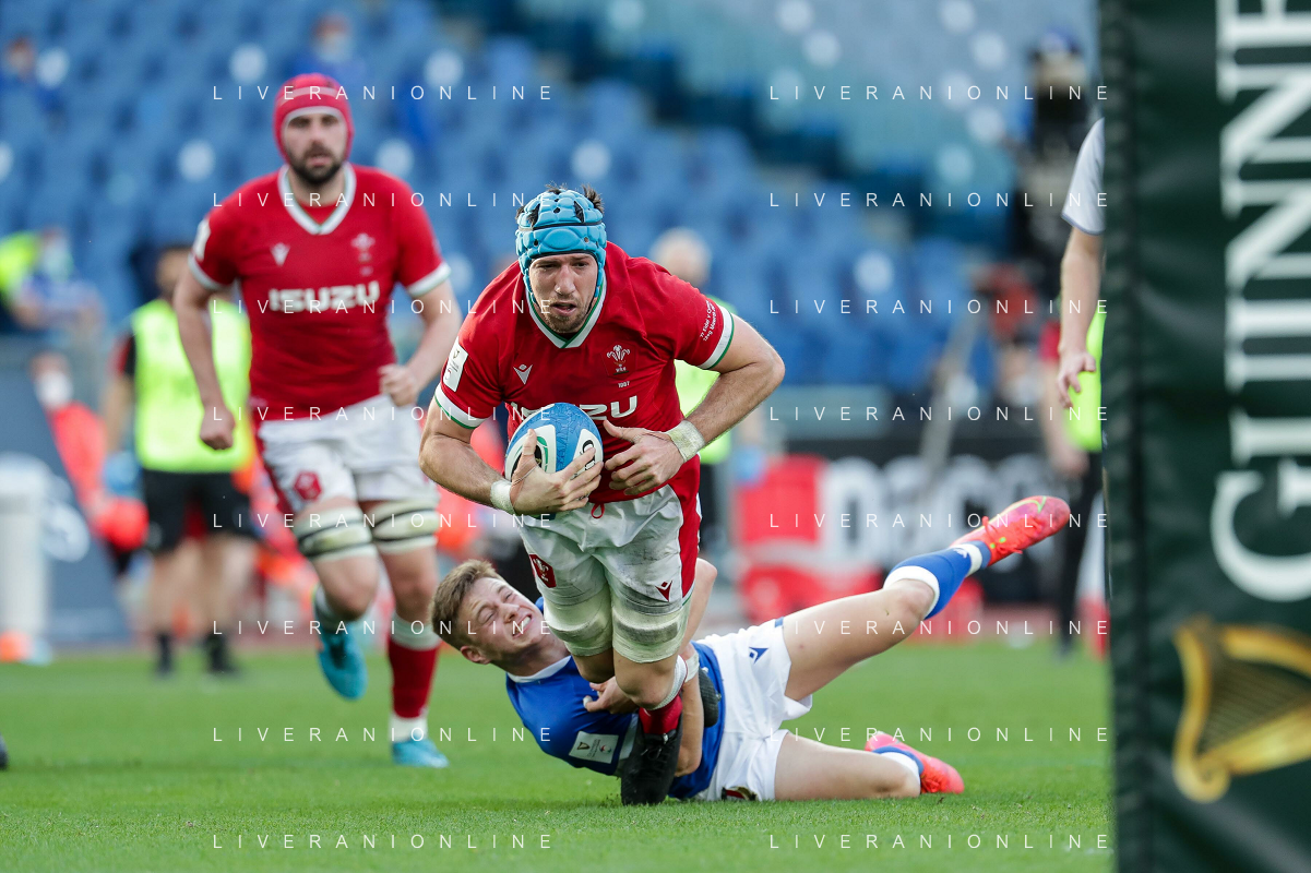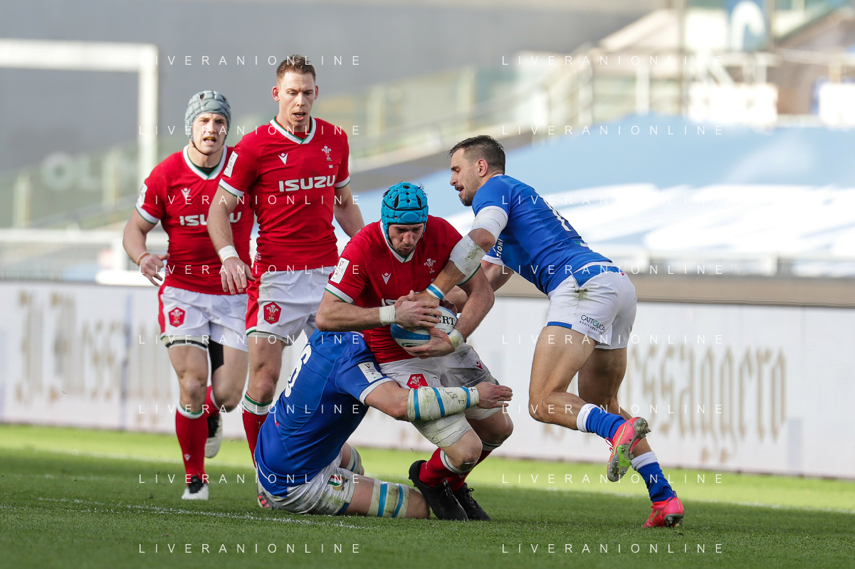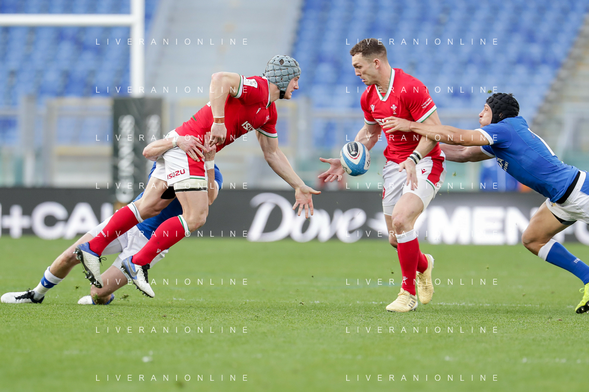 Marianiu/LMedia - 2021 Guinness Six Nations Rugby - Italy vs Wales - Rugby Six Nations match 13 March 2021 - Stadio Olimpico, rome, Italy Photo showing: touche Wales @Marianiu/LMedia AG ALDO LIVERANI SAS