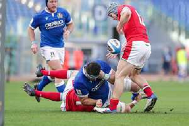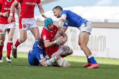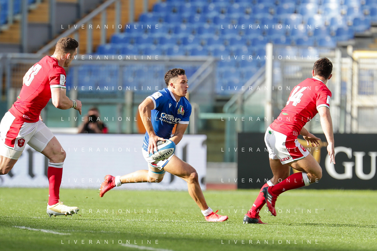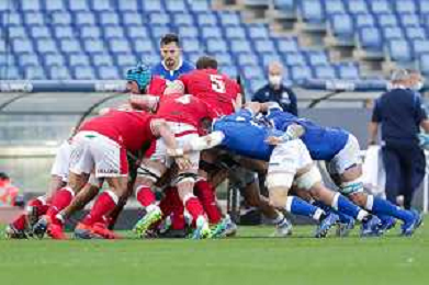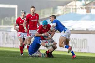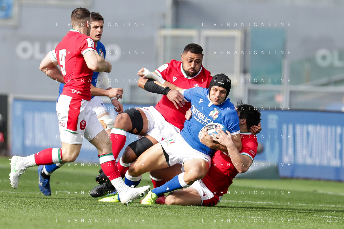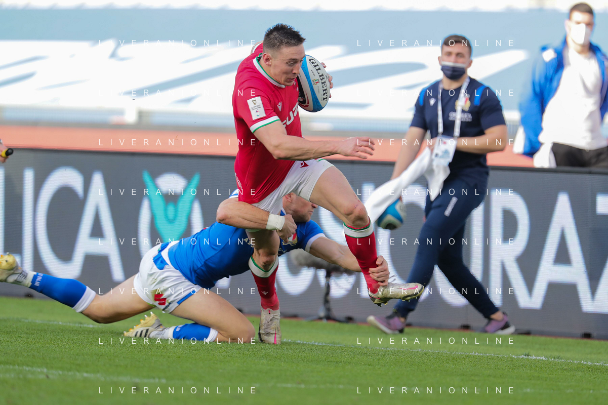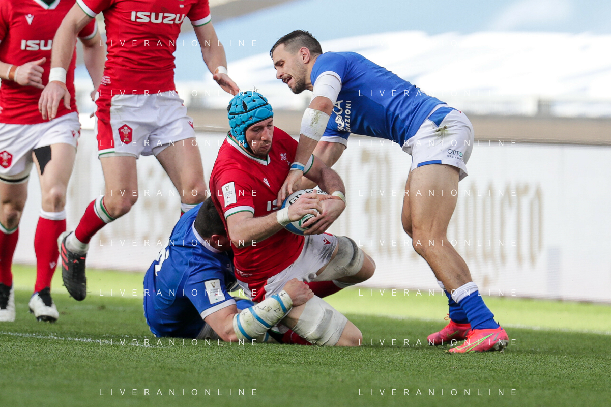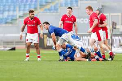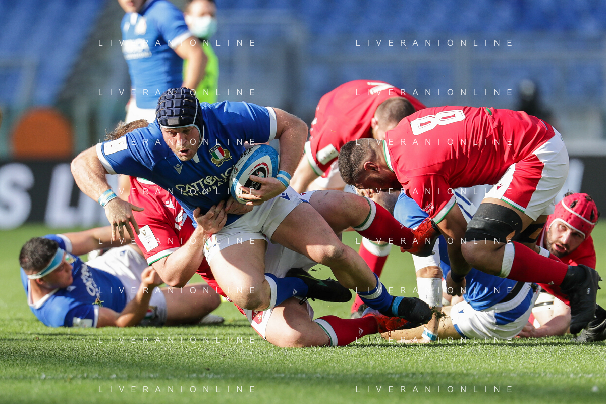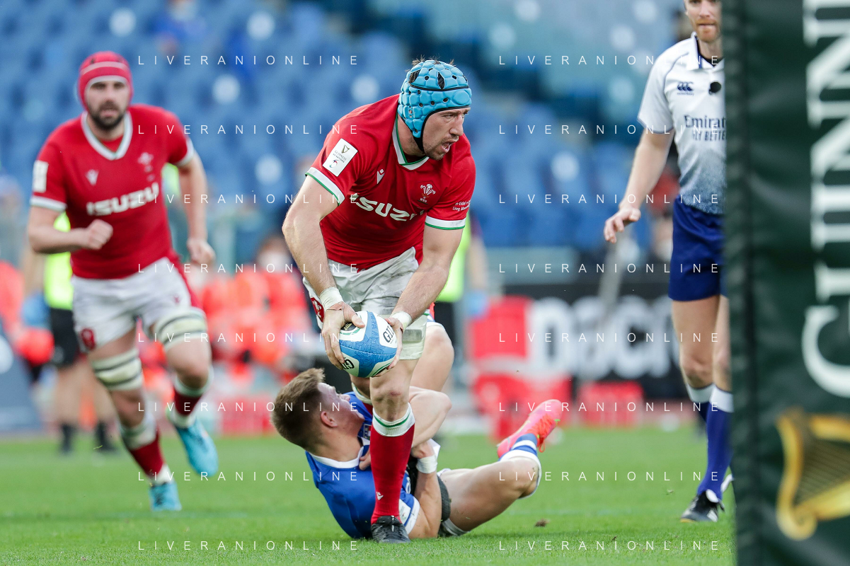 Marianiu/LMedia - 2021 Guinness Six Nations Rugby - Italy vs Wales - Rugby Six Nations match 13 March 2021 - Stadio Olimpico, rome, Italy Photo showing: touche Wales @Marianiu/LMedia AG ALDO LIVERANI SAS