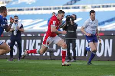 Marianiu/LMedia - 2021 Guinness Six Nations Rugby - Italy vs Wales - Rugby Six Nations match 13 March 2021 - Stadio Olimpico, rome, Italy Photo showing: Josh Adams (Wales) runs to score a try @Marianiu/LMedia AG ALDO LIVERANI SAS