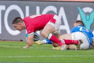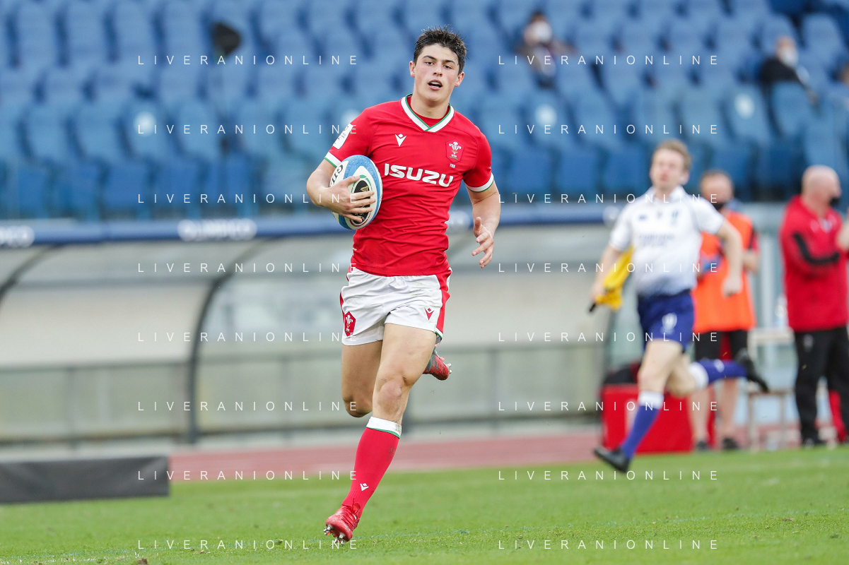 Marianiu/LMedia - 2021 Guinness Six Nations Rugby - Italy vs Wales - Rugby Six Nations match 13 March 2021 - Stadio Olimpico, rome, Italy Photo showing: try Callum Sheedy (Wales) @Marianiu/LMedia AG ALDO LIVERANI SAS