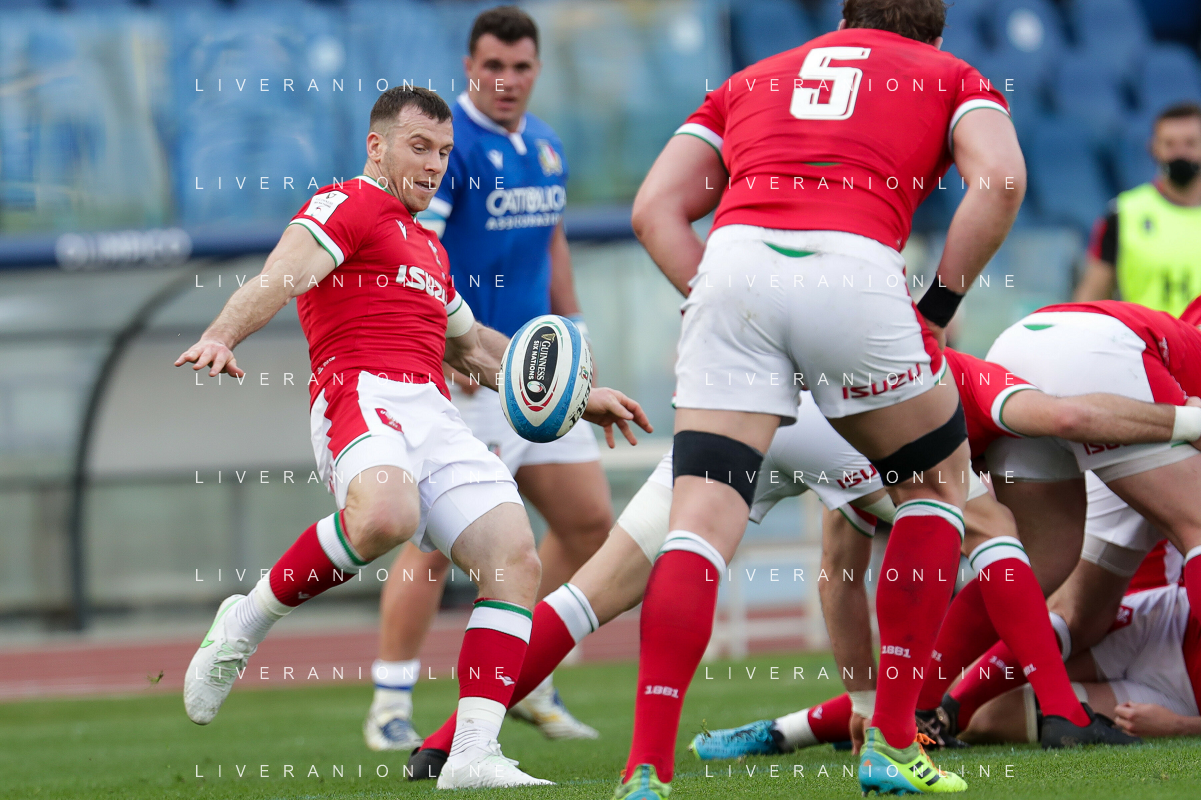 Marianiu/LMedia - 2021 Guinness Six Nations Rugby - Italy vs Wales - Rugby Six Nations match 13 March 2021 - Stadio Olimpico, rome, Italy Photo showing: Dan Biggar (Wales) @Marianiu/LMedia AG ALDO LIVERANI SAS