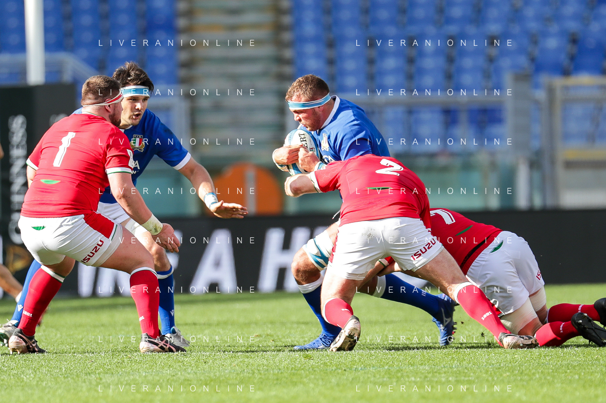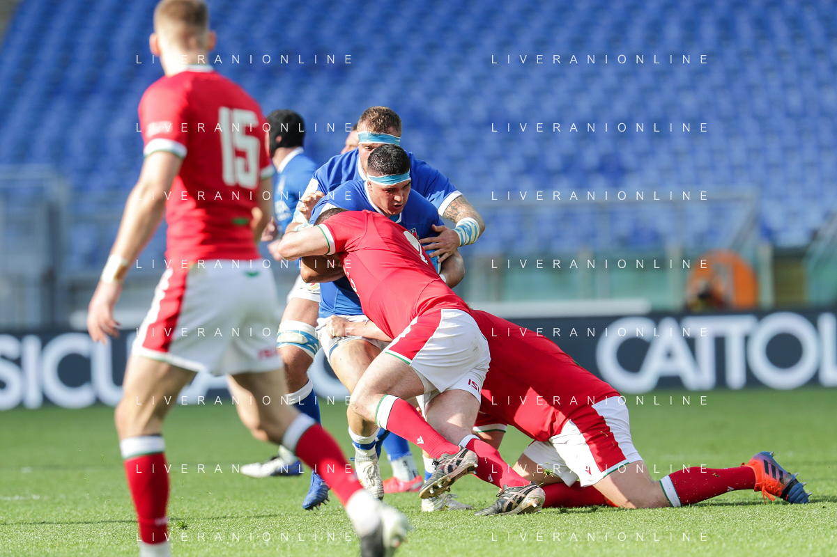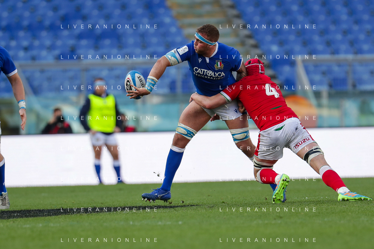 Marianiu/LMedia - 2021 Guinness Six Nations Rugby - Italy vs Wales - Rugby Six Nations match 13 March 2021 - Stadio Olimpico, rome, Italy Photo showing: Marco Lazzaroni (Italy) @Marianiu/LMedia AG ALDO LIVERANI SAS