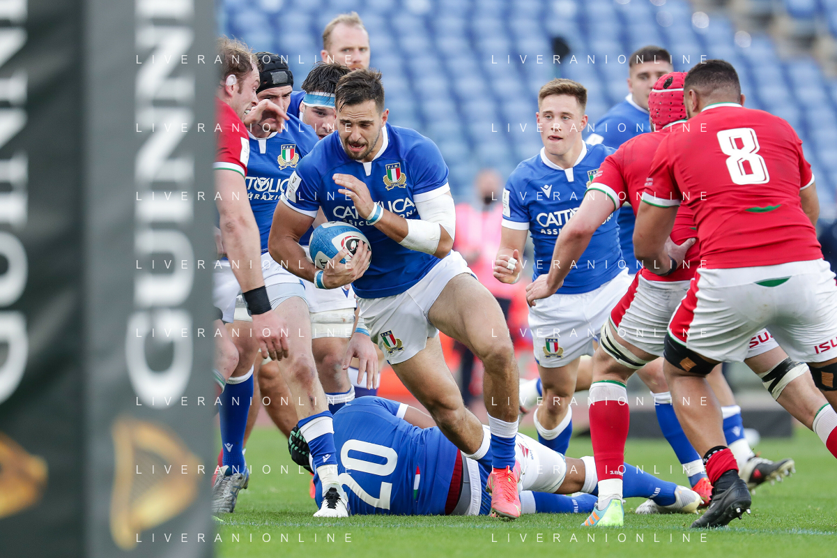Marianiu/LMedia - 2021 Guinness Six Nations Rugby - Italy vs Wales - Rugby Six Nations match 13 March 2021 - Stadio Olimpico, rome, Italy Photo showing: David Sisi (Italy) @Marianiu/LMedia AG ALDO LIVERANI SAS