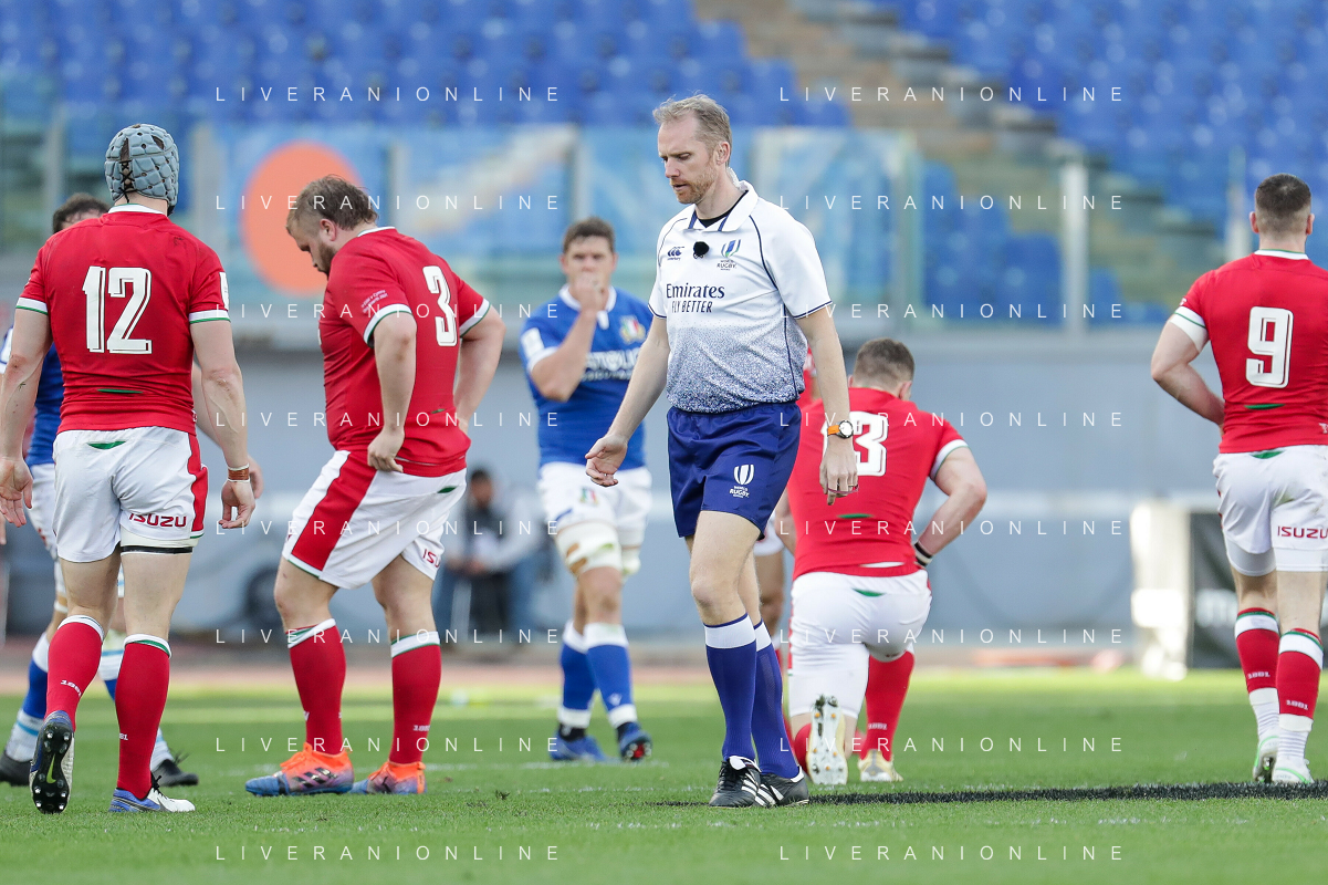 Marianiu/LMedia - 2021 Guinness Six Nations Rugby - Italy vs Wales - Rugby Six Nations match 13 March 2021 - Stadio Olimpico, rome, Italy Photo showing: referee Wayne Barnes @Marianiu/LMedia AG ALDO LIVERANI SAS