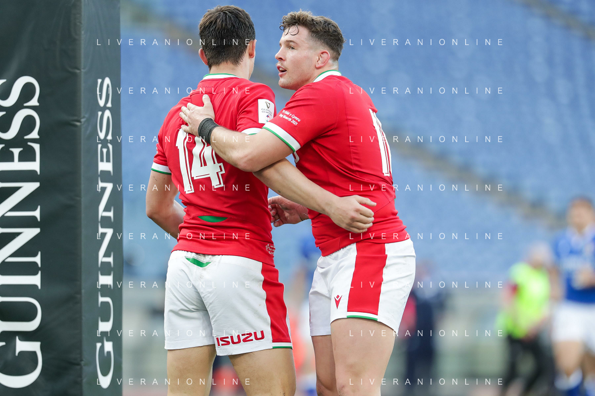 Marianiu/LMedia - 2021 Guinness Six Nations Rugby - Italy vs Wales - Rugby Six Nations match 13 March 2021 - Stadio Olimpico, rome, Italy Photo showing: Happiness of Wales after scoring a try @Marianiu/LMedia AG ALDO LIVERANI SAS