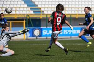 © TVRG Valentina Giacinti (Milan) segna il gol dell'1 a 2 Inter Milano Women vs Milan Women Coppa Italia Femminile semifinale - gara di andata stadio Ernesto Breda Sesto San Giovanni (MI) 14-03-2021 foto Roberto Garavaglia/ag. Aldo Liverani sas
