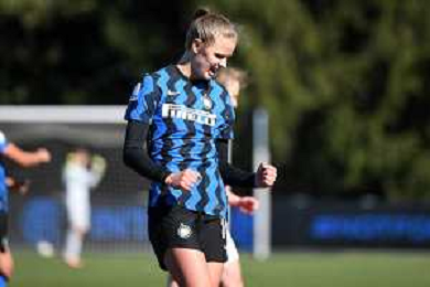 © TVRG esultanza finale Caroline Moller Hansen (Inter) Inter Milano Women vs Milan Women Coppa Italia Femminile semifinale - gara di andata stadio Ernesto Breda Sesto San Giovanni (MI) 14-03-2021 foto Roberto Garavaglia/ag. Aldo Liverani sas