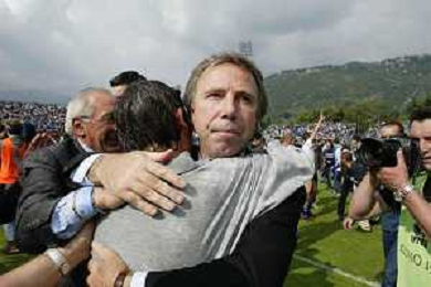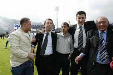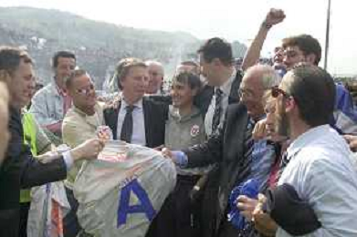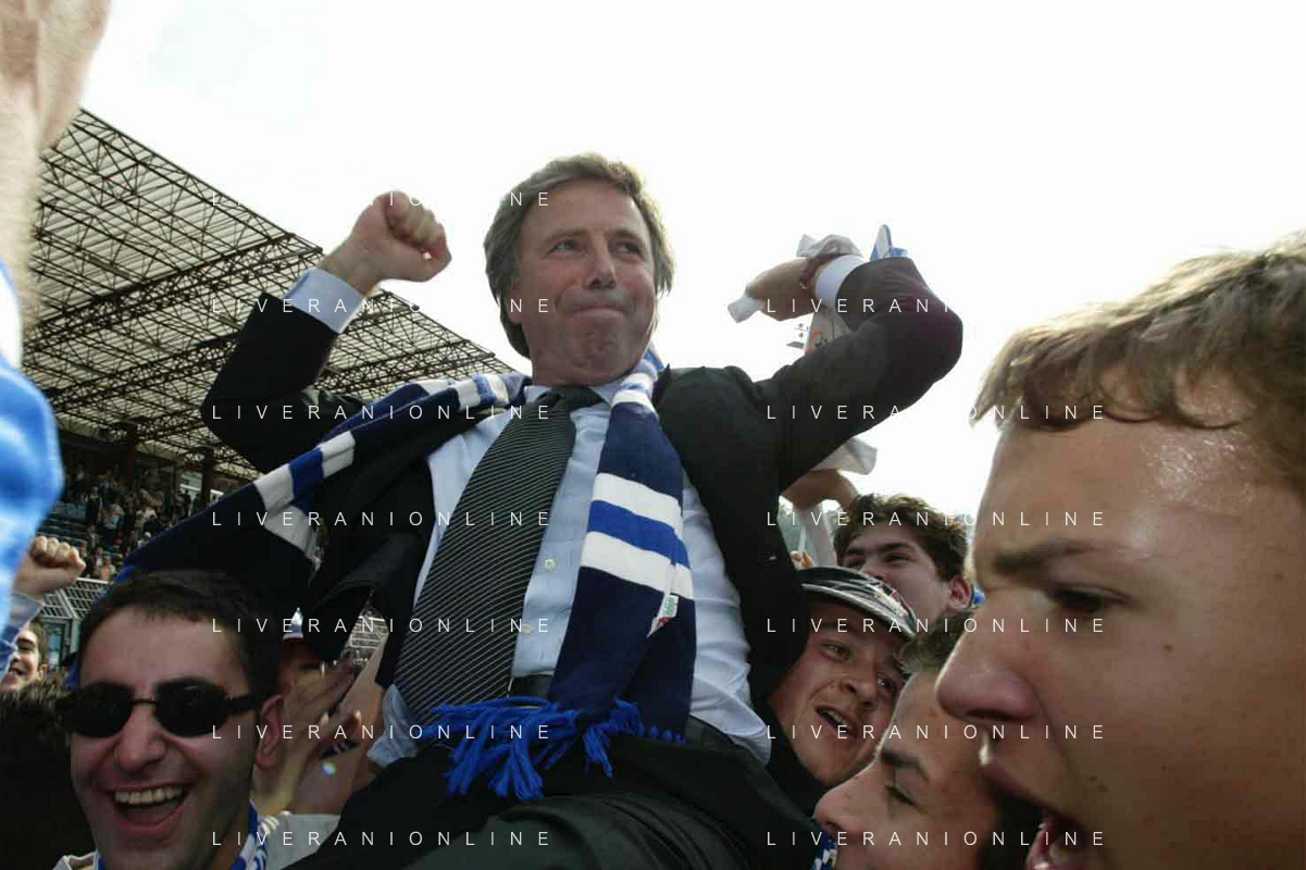 COMO - EMPOLI CAMPIONATO SERIE B 12/05/2002 NELLA FOTO IL PRESIDENTE ENRICO PREZIOSI CON I TIFOSI FESTEGGIA LA PROMOZIONE IN SERIE A DEL COMO AGENZIA ALDO LIVERANI SAS