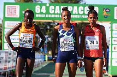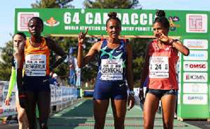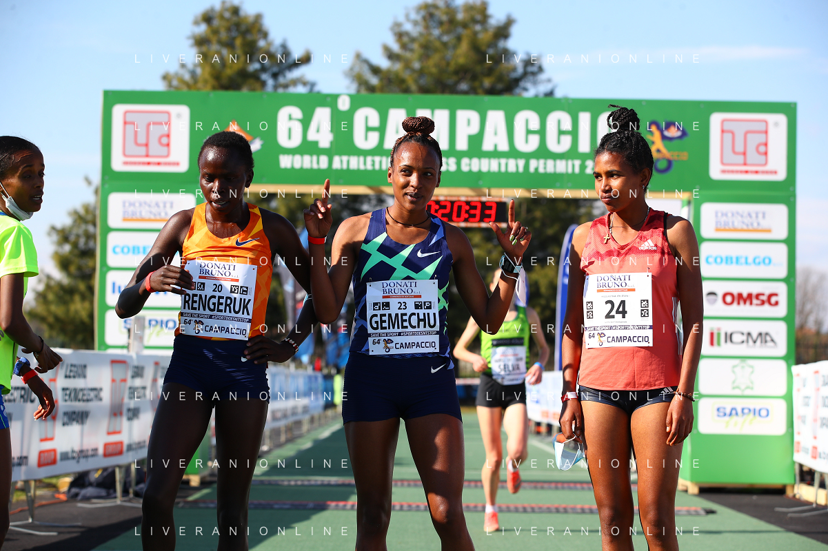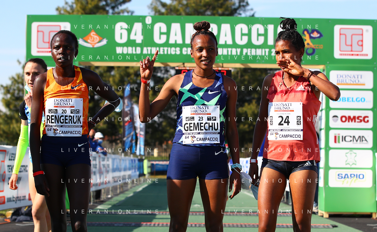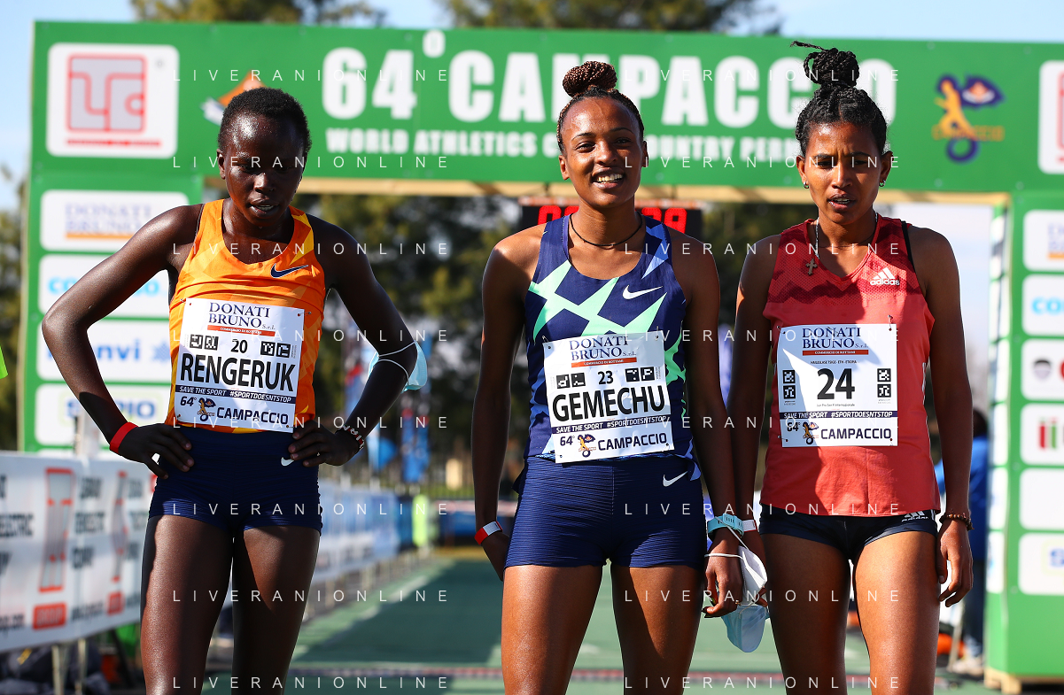 FSCV - 64° Cross del Campaccio San Giorgio su Legnano (MI), 21 Marzo2021 Nella foto: Tsehay Gemechu, Lilian Rangeruk e Tsige Haileslase. podio femminile dell'edizione del 2021 Ph. Soli - Ag. Aldo Liverani/ AGENZIA ALDO LIVERANI SAS
