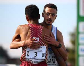 FSCV - 64° Cross del Campaccio San Giorgio su Legnano (MI), 21 Marzo2021 Nella foto: Eyob Faniel e Iliass Aouani al traguardo Ph. Soli - Ag. Aldo Liverani/ AGENZIA ALDO LIVERANI SAS