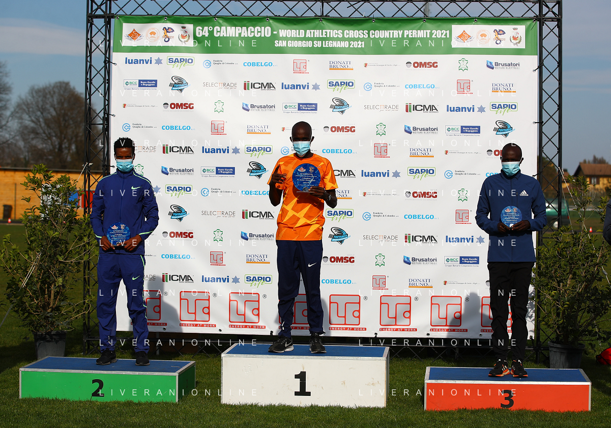 FSCV - 64° Cross del Campaccio San Giorgio su Legnano (MI), 21 Marzo2021 Nella foto: Jacob Kiplimo, Melak Nibret e Oscar Chelimo Ph. Soli - Ag. Aldo Liverani/ AGENZIA ALDO LIVERANI SAS