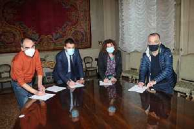 BILANCIO DI PREVISIONE 2021: IMOLA 25 03 2021 BILANCIO PREVISIONE 2021 COMUNE E ORGANIZZAZIONI SINDACALI FIRMANO IL VERBALE DI ACCORDO PER IL COMUNE FIRMA IL SINDACO MARCO PANIERI FOTO GIANNI SANNA-AG ALDO LIVERANI SAS