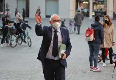 IMOLA 26 03 2021 PIAZZA MATTEOTTI COMITATO PRIORITA' ALLA SCUOLA HA ORGANIZZATO LA MANIFESTAZIONE CON I GENITORI INSEGNANTI E I BAMBINI PER ANDARE A SCUOLA NELLA FOTO FABRIZIO CASTELLARI ASSESSORE ALLA SCUOLA E UNO DEI ORGANIZZATORI FOTO GIANNI SANNA-AG ALDO LIVERANI SAS