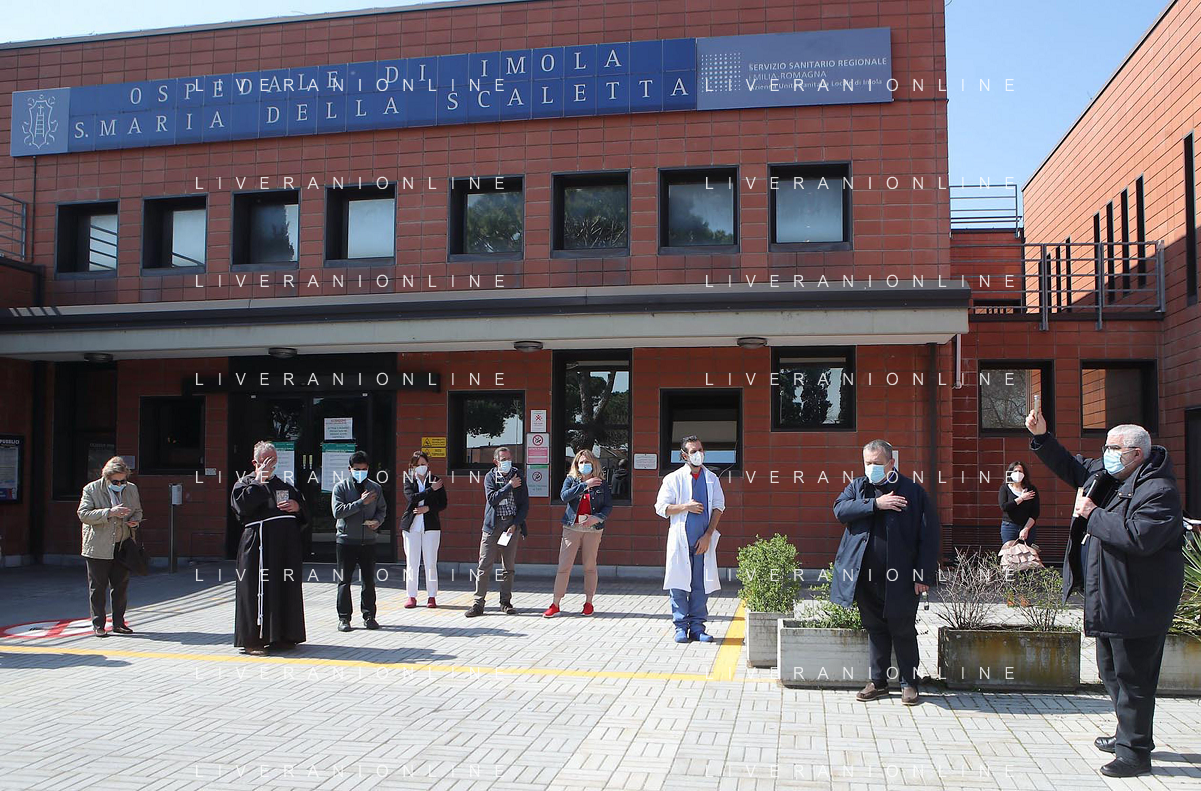 IMOLA 29 03 2021 OSPEDALE SANTA MARIA DELLA SCALETTA BENEDIZIONE PASQUALE DEL VESCOVO GIOVANNI MOSIATTI AGLI OPERATORI SANITARI E PAZIENTI - 8 file
