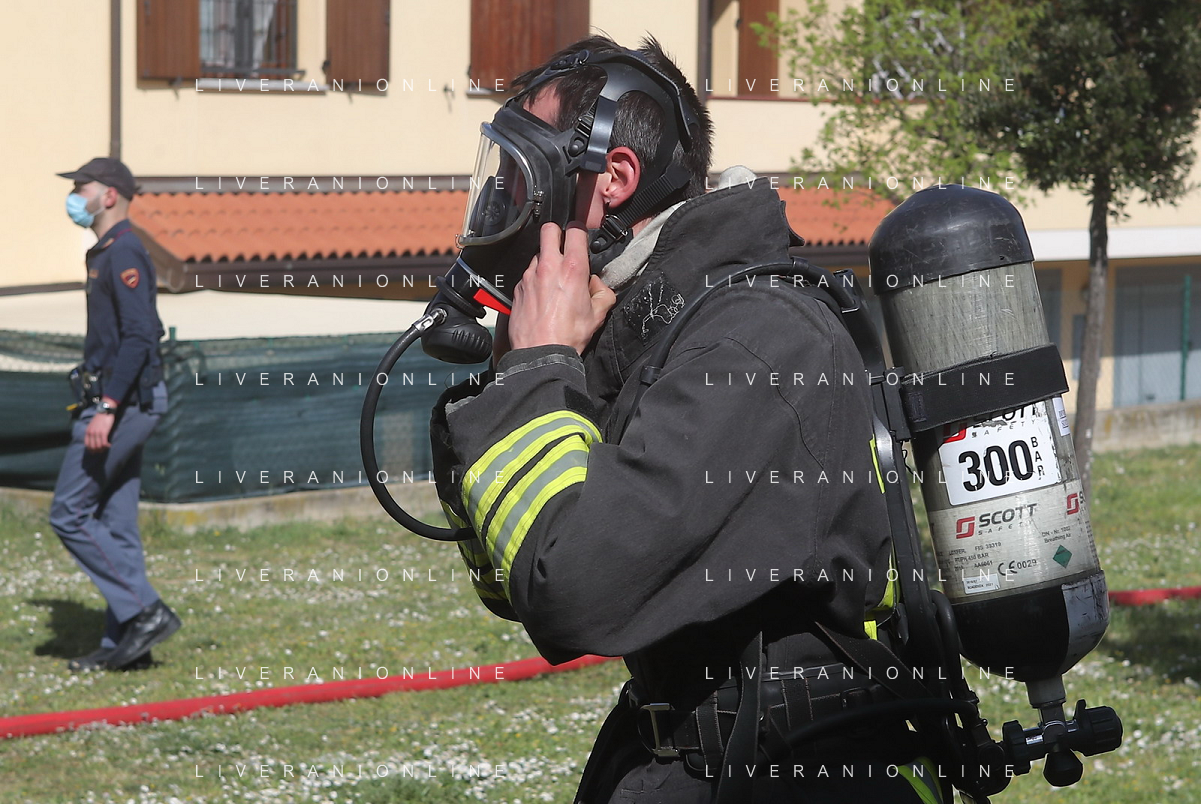 IMOLA 02 04 2021 INCENDIO IN UN APPARTAMENTO IN VIA OLAF PALME BRUCIA UNA CAMERA PROBABILMENTE UN CORTO CIRCUITO SUL POSTO VIGILI DEL FUOCO IMOLA POLIZIA DI STATO FOTO GIANNI SANNA-AG ALDO LIVERANI SAS