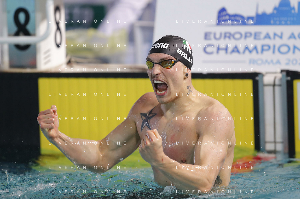 Riccione 02/04/2021 - CAMPIONATO ITALIANO UNIPOLSAI ASSOLUTO DI NUOTO PRIMAVERILE- nella foto: esultanza stefano ballo ©Claudio Zamagni/Agenzia Aldo Liverani