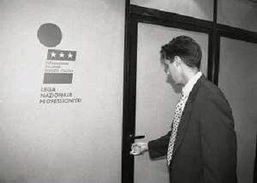 1996 MILANO HOTEL FORTE CREST CAMPAGNIA TRAFERIMENTI CALCIATORI“CALCIOMERCATO“ NELLA FOTO BOX DELLA LEGA CALCIO AG ALDO LIVERANI SAS