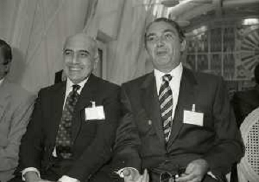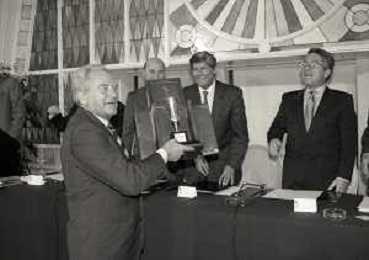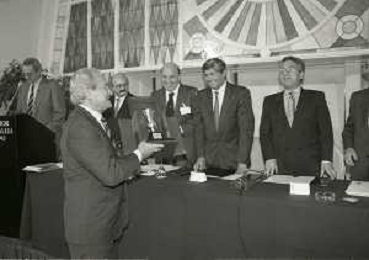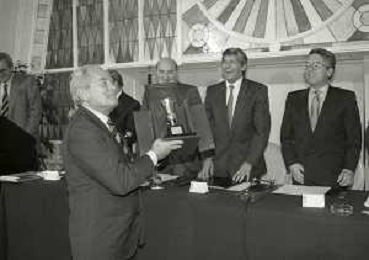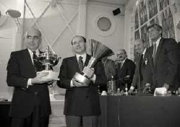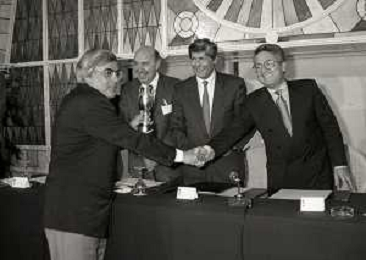 1993 MILANO PREMIAZIONI DELLA LEGA CALCIO ALLE SOCIETA' DI CALCIO ALLA PRESENZA DEI PRESIDENTI HOTEL GALLIA NELLA FOTO ERNESTO PELLEGRINI AG ALDO LIVERANI SAS