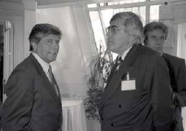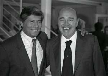 1993 MILANO PREMIAZIONI DELLA LEGA CALCIO ALLE SOCIETA' DI CALCIO ALLA PRESENZA DEI PRESIDENTI HOTEL GALLIA NELLA FOTO LUCIANO MOGGI E ALDO SPINELLI AG ALDO LIVERANI SAS