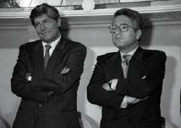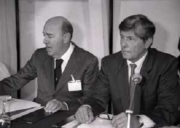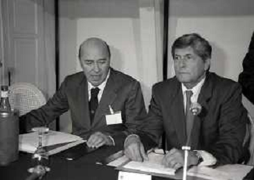 1993 MILANO PREMIAZIONI DELLA LEGA CALCIO ALLE SOCIETA' DI CALCIO ALLA PRESENZA DEI PRESIDENTI HOTEL GALLIA NELLA FOTO GIORGIO PEDRANESCHI E ANTONIO MATARRESE AG ALDO LIVERANI SAS