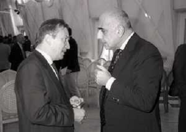 1993 MILANO PREMIAZIONI DELLA LEGA CALCIO ALLE SOCIETA' DI CALCIO ALLA PRESENZA DEI PRESIDENTI HOTEL GALLIA NELLA FOTO MAURO BORSANO E PAOLO MANTOVANI AG ALDO LIVERANI SAS