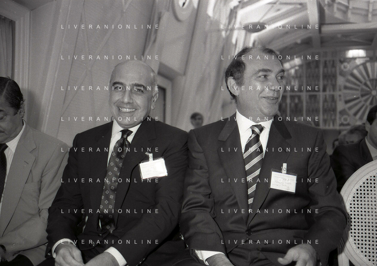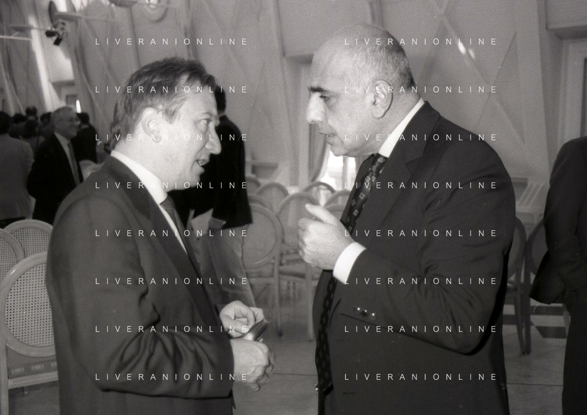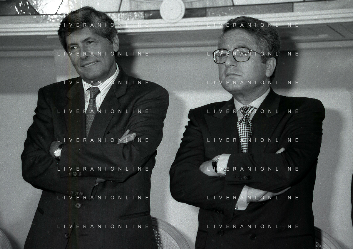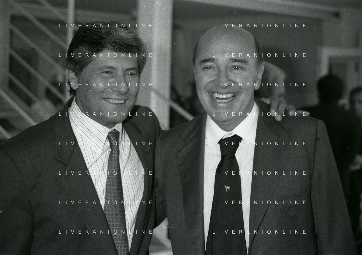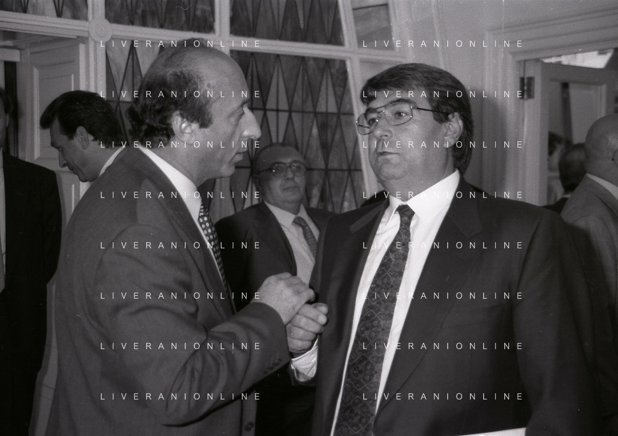 1993 MILANO PREMIAZIONI DELLA LEGA CALCIO ALLE SOCIETA' DI CALCIO ALLA PRESENZA DEI PRESIDENTI HOTEL GALLIA NELLA FOTO MAUOR BORSANO E ADRIANO GALLIANI AG ALDO LIVERANI SAS