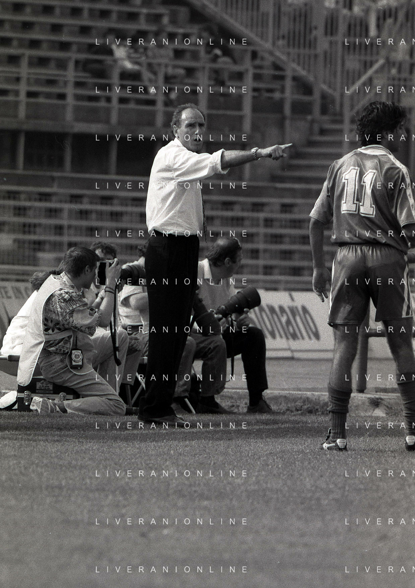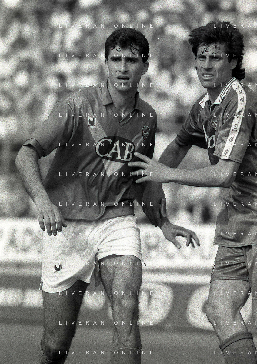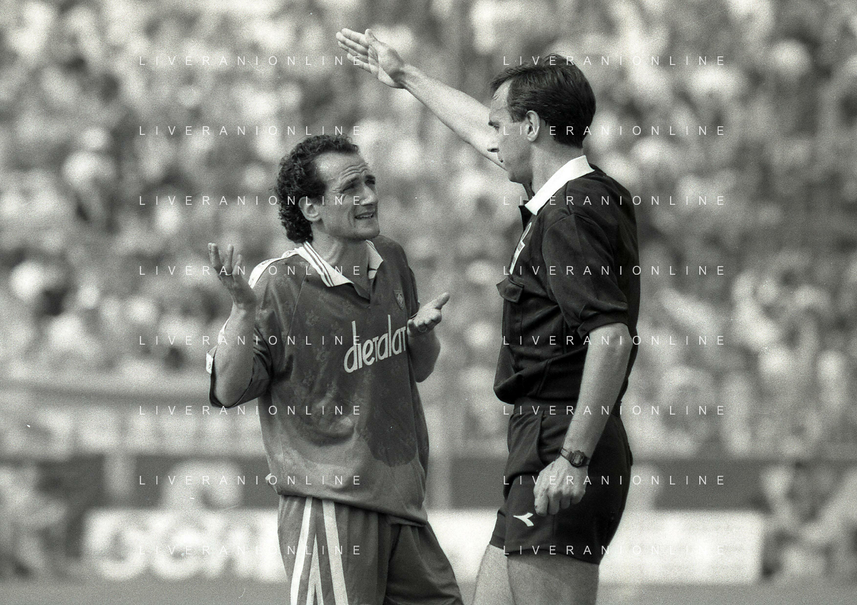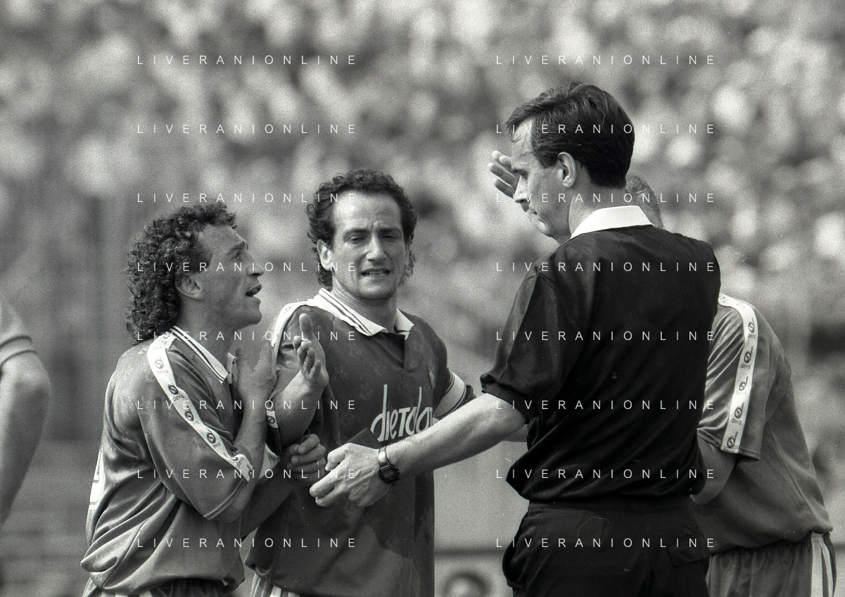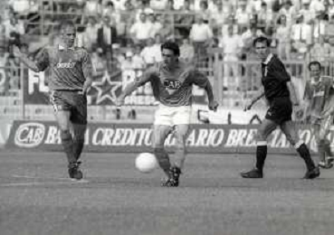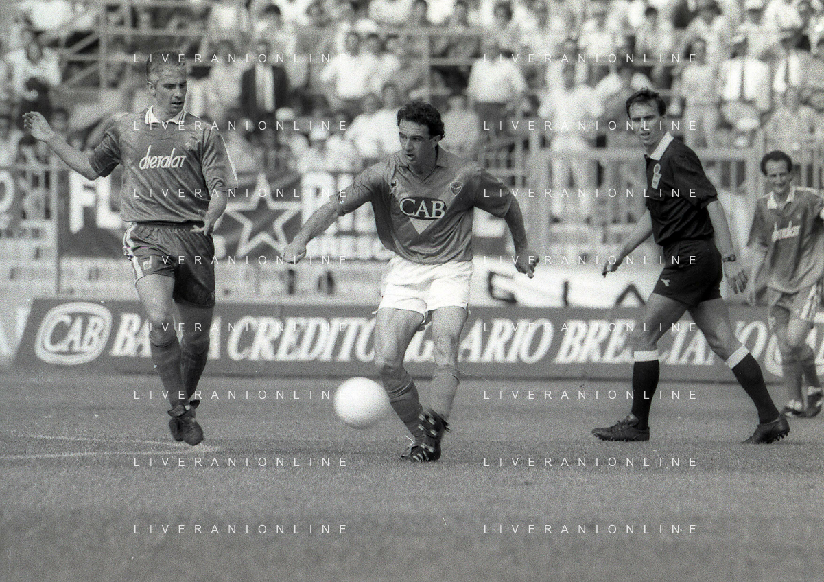 10-05-1992 BRESCIA CAMPIONATO DI CALCIO SERIE B BRESCIA -AVELLINO 2-0 NELLA FOTO ALBERTO URBAN-COSTANZO CELESTINI E L'ARBITRO ROBERTO BETTIN AG ALDO LIVERANI SAS