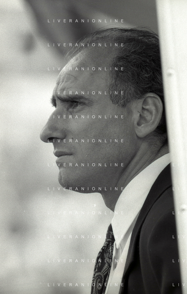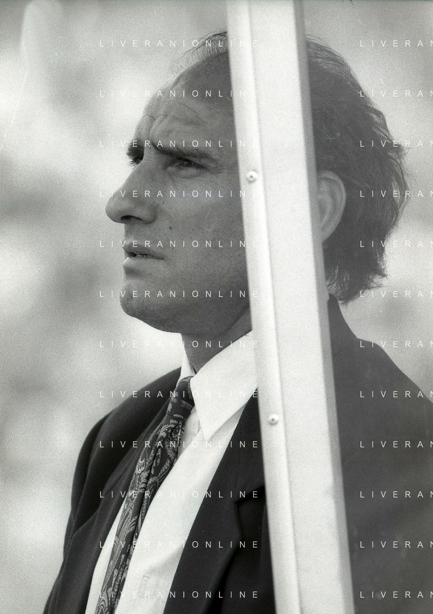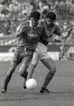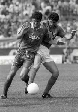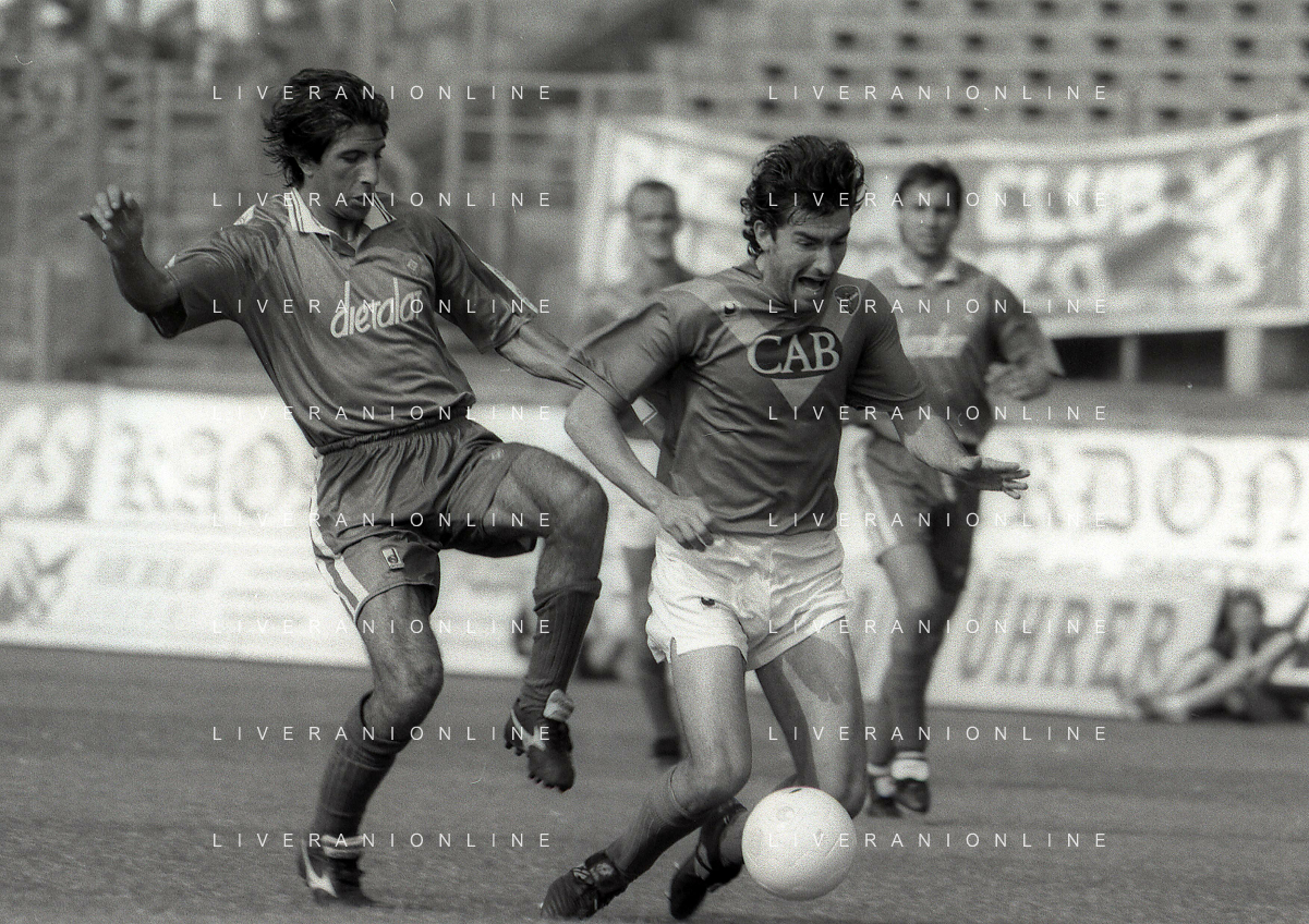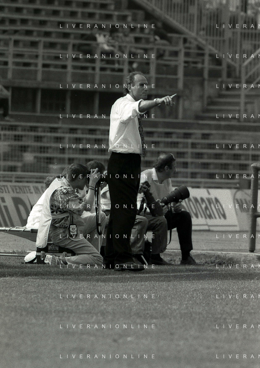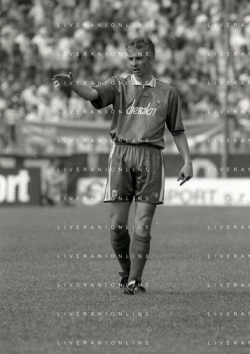 10-05-1992 BRESCIA CAMPIONATO DI CALCIO SERIE B BRESCIA -AVELLINO 2-0 NELLA FOTO ALBERTO URBAN-COSTANZO CELESTINI E L'ARBITRO ROBERTO BETTIN AG ALDO LIVERANI SAS