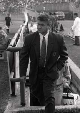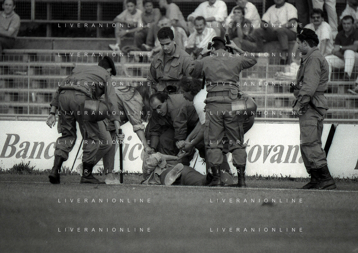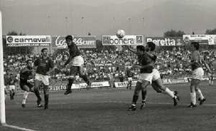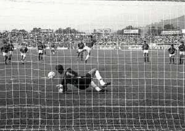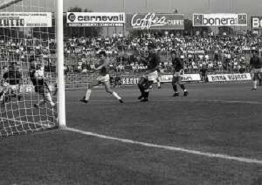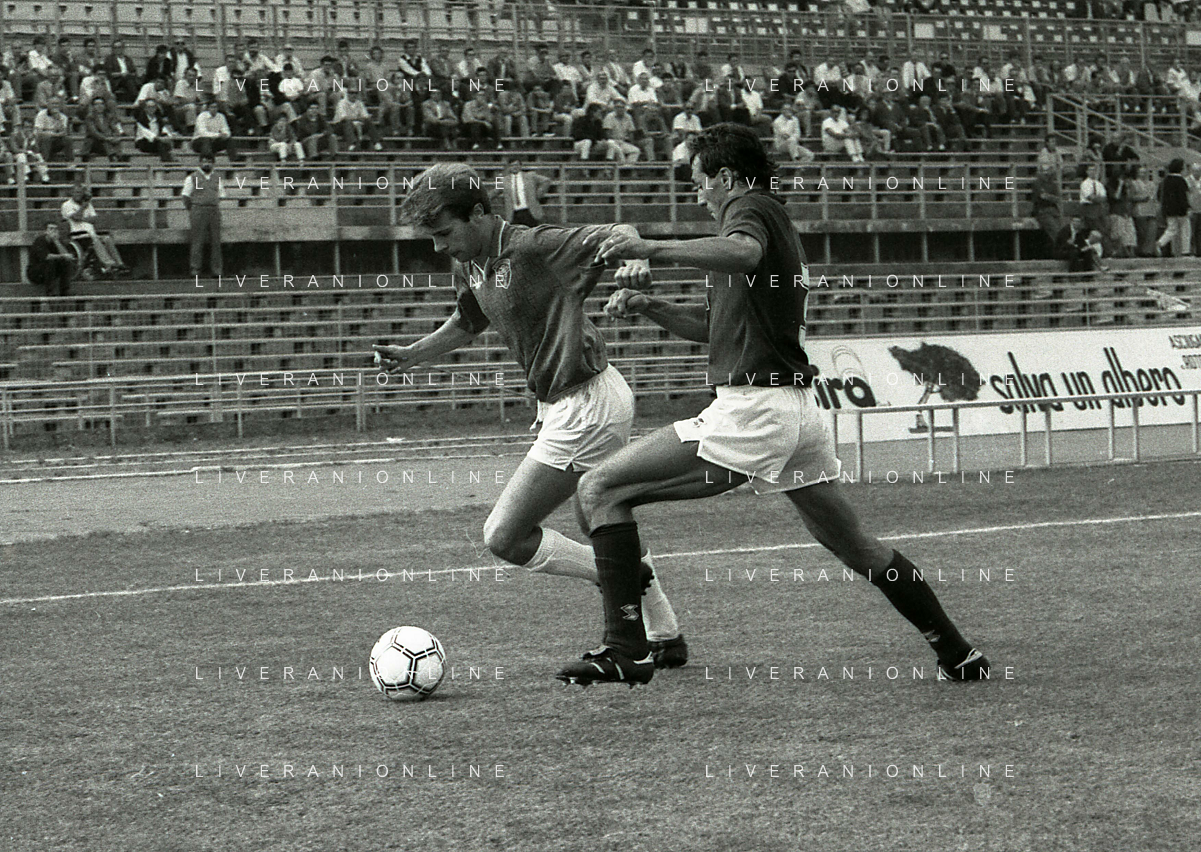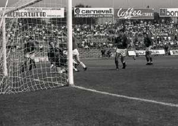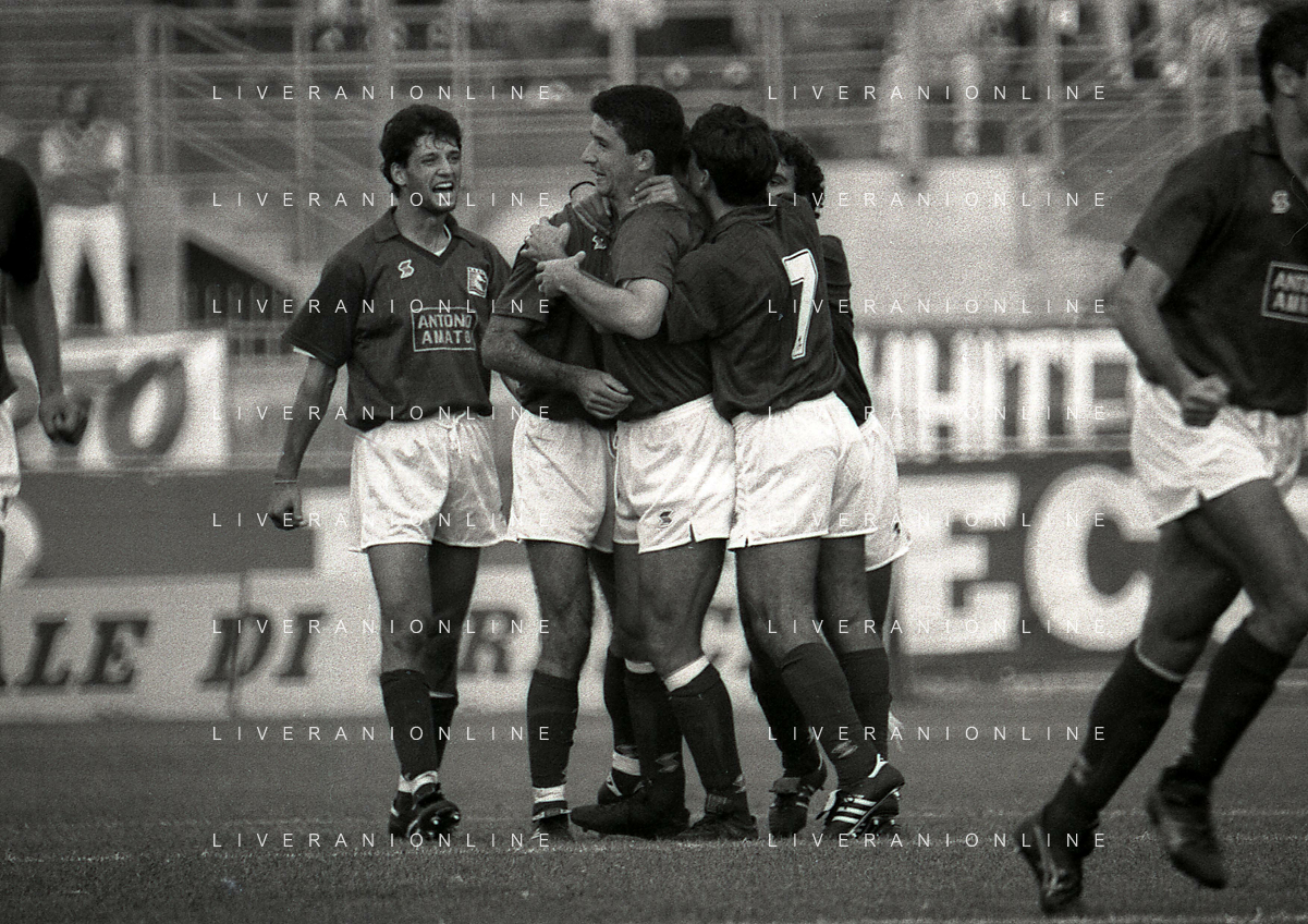 16-09-1990 BRESCIA CAMPIONATO DI CALCIO SERIE B BRESCIA -SALERNITANA 1-2 NELLA FOTO MASSIMO BATTARA E MAURIZIO GANZ DOPO IL RIGORE PARATO AG ALDO LIVERANI SAS