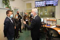 IMOLA 01 02 2021 POLIZIA MUNICIPALE COMMANDANTE DELLA PM DANIELE BRIGHI E SINDACO MARCO PANIERI VISITANO LA NUOVA CENTRALE RADIO OPERATIVA NELLA FOTO SINDACO MARCO PANIERI E COMM DANIELE BRIGHI ©SANNA/AGENZIA ALDO LIVERANI SAS