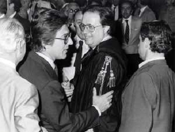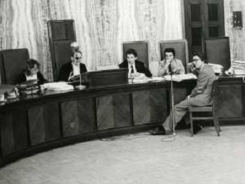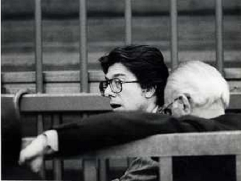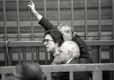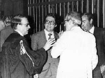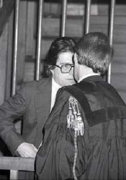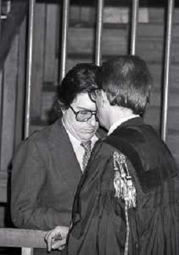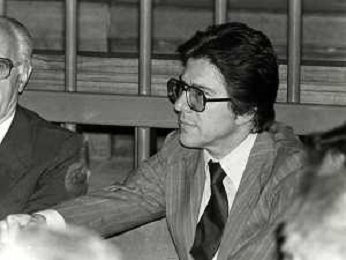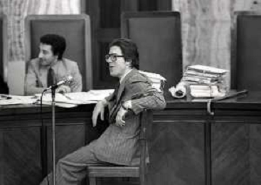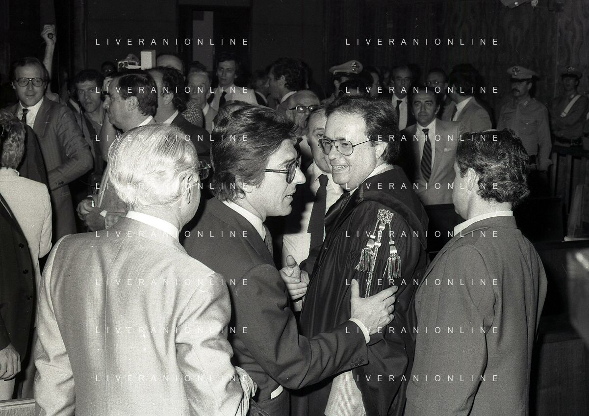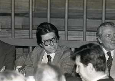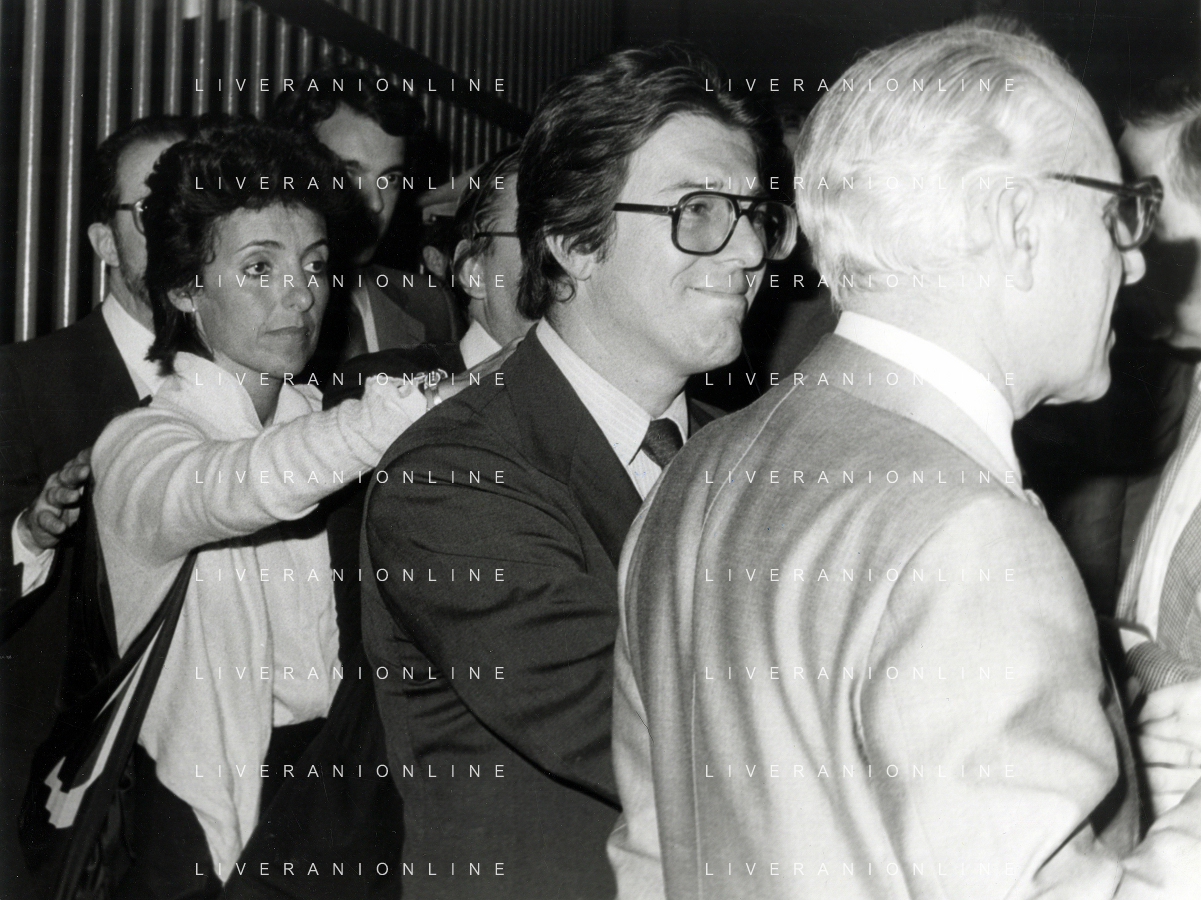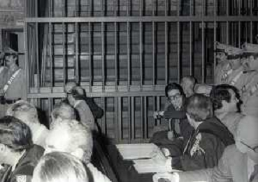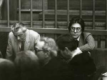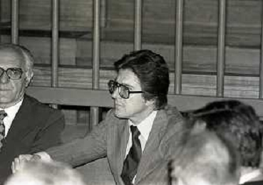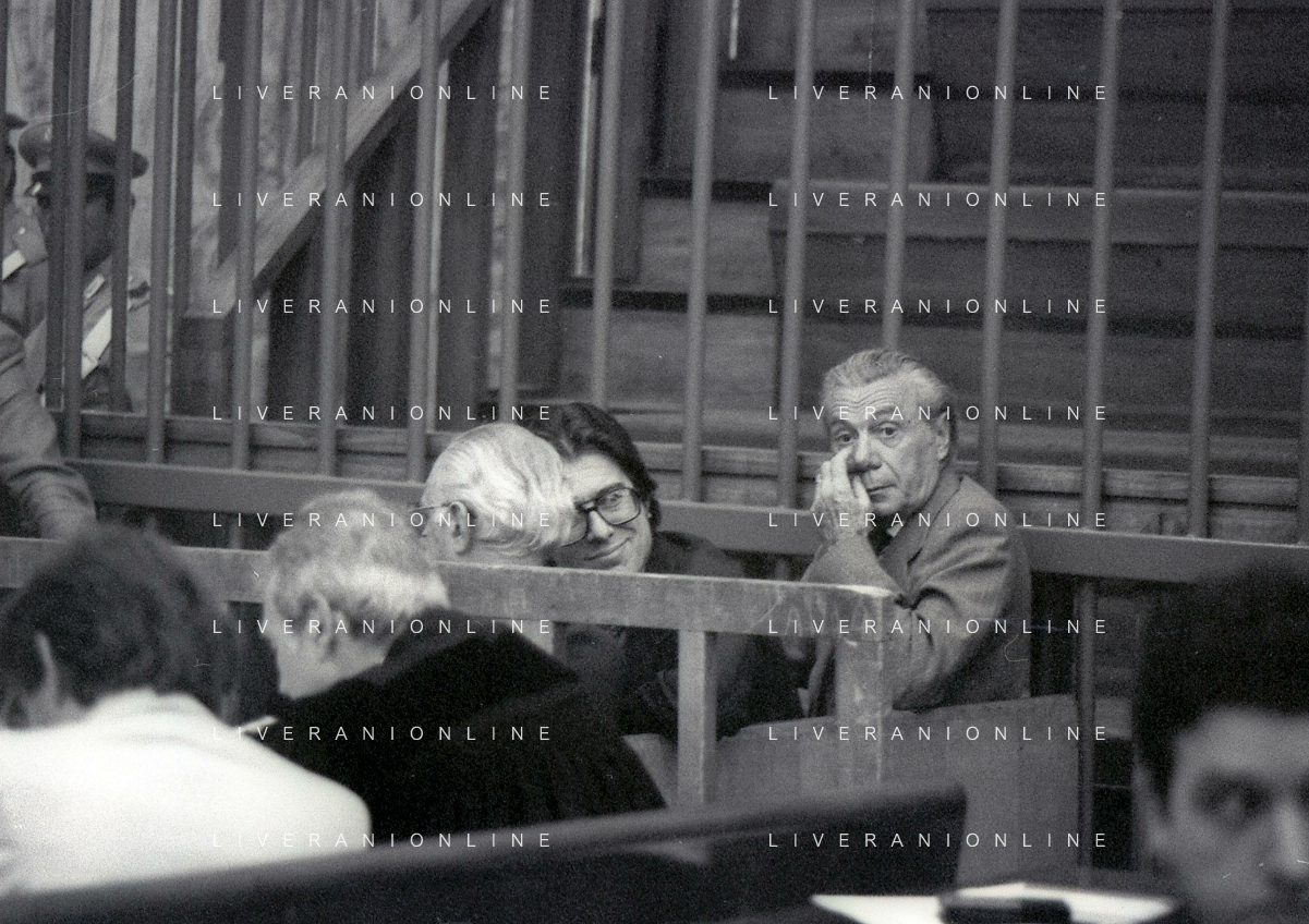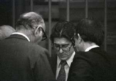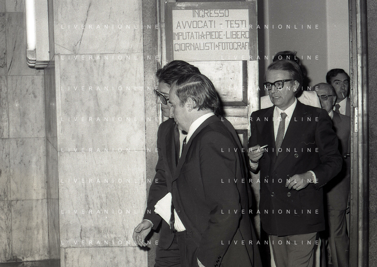RETROSPETTICA CARLO BONOMI INDUSTRIALE NELLA FOTO CARLO BONOMI IN TRIBUNALE A MILANO PER IL CRAC DEL BANCO AMBROSIANO NELL'ANNO 1980CON MARIO VALERI MANERA AG ALDO LIVERANI SAS