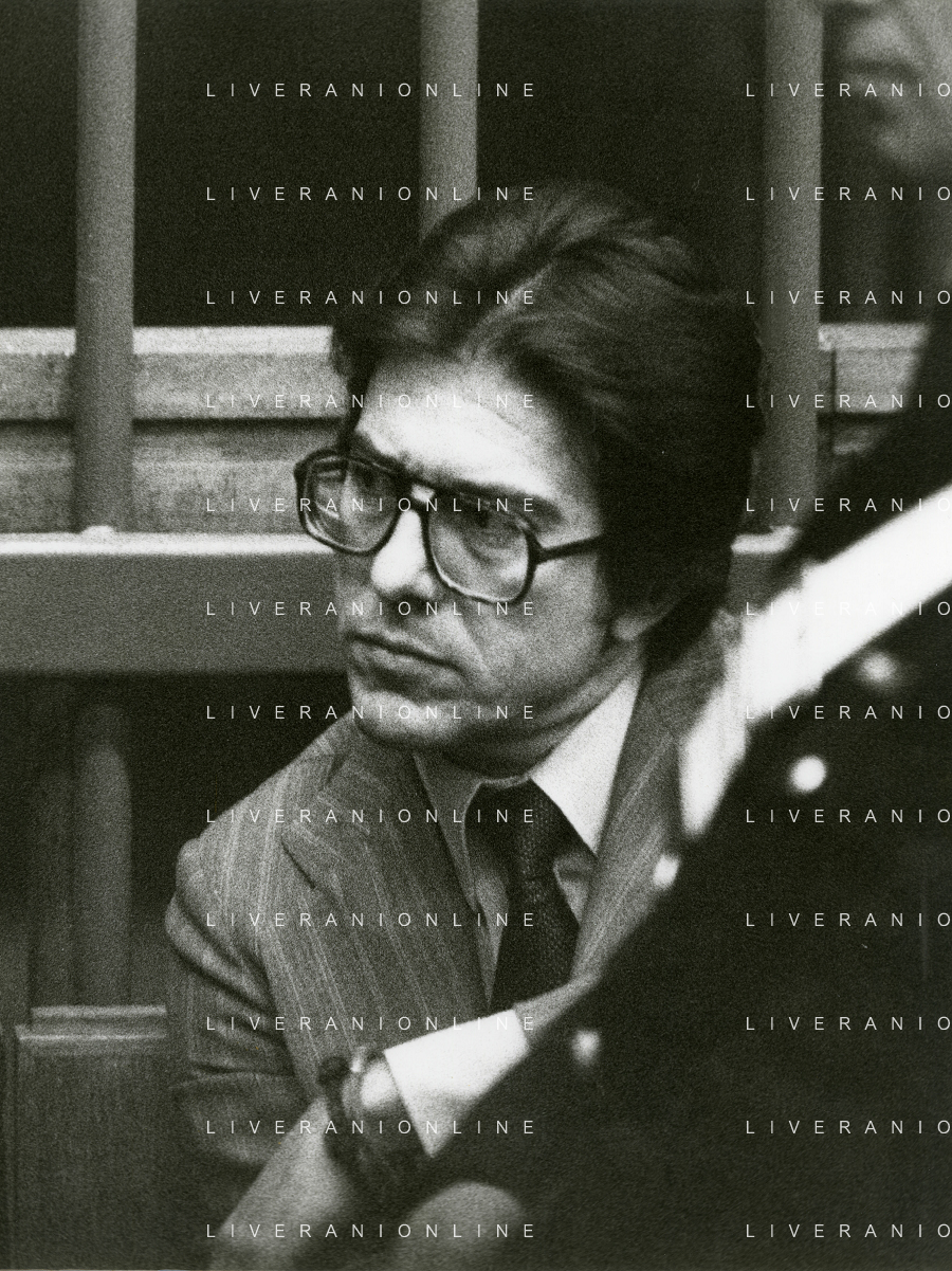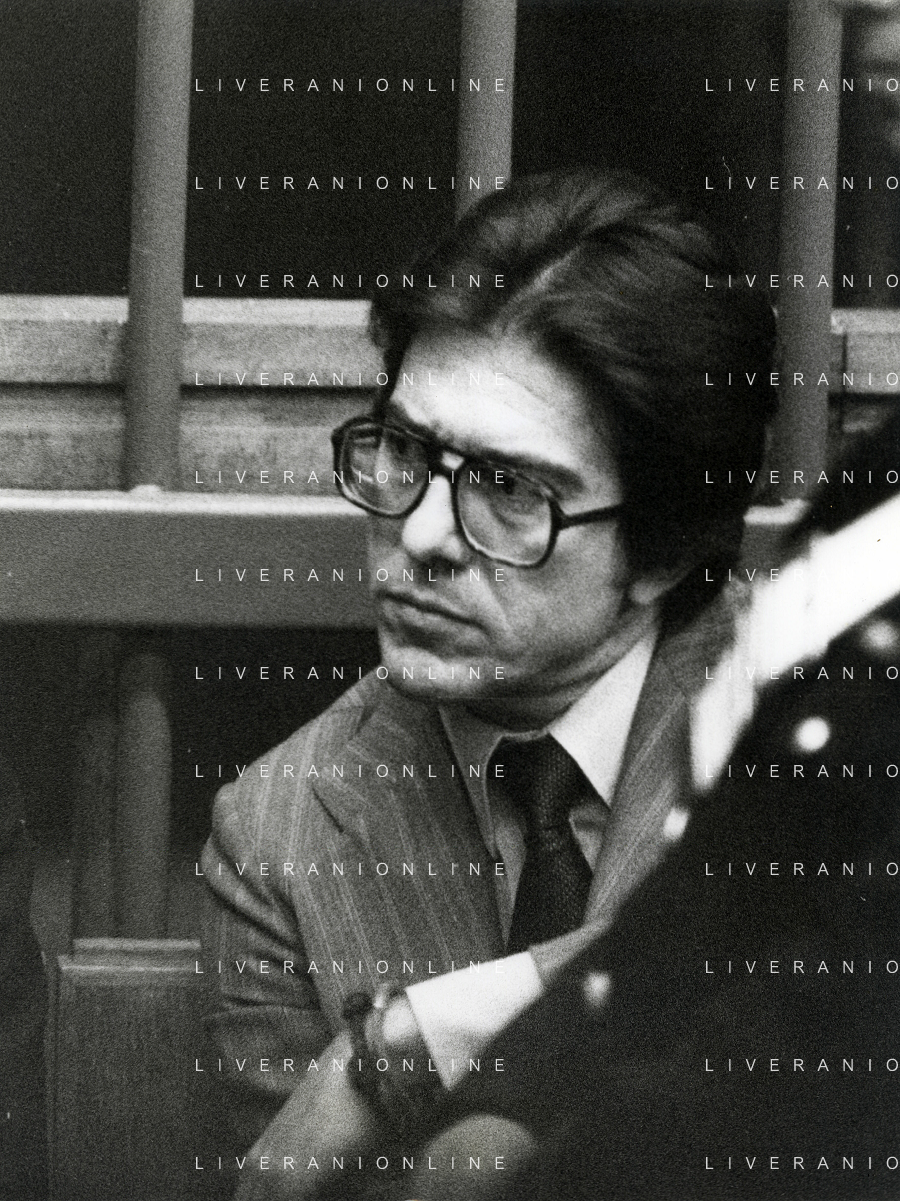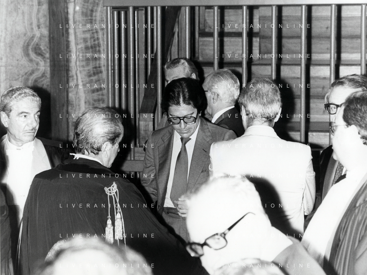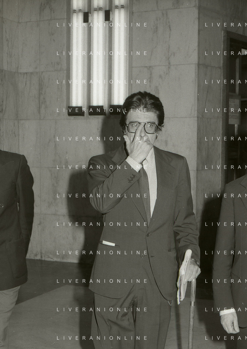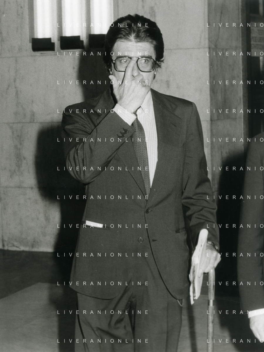 RETROSPETTICA CARLO BONOMI INDUSTRIALE NELLA FOTO CARLO BONOMI IN TRIBUNALE A MILANO PER IL CRAC DEL BANCO AMBROSIANO NELL'ANNO 1980 AG ALDO LIVERANI SAS