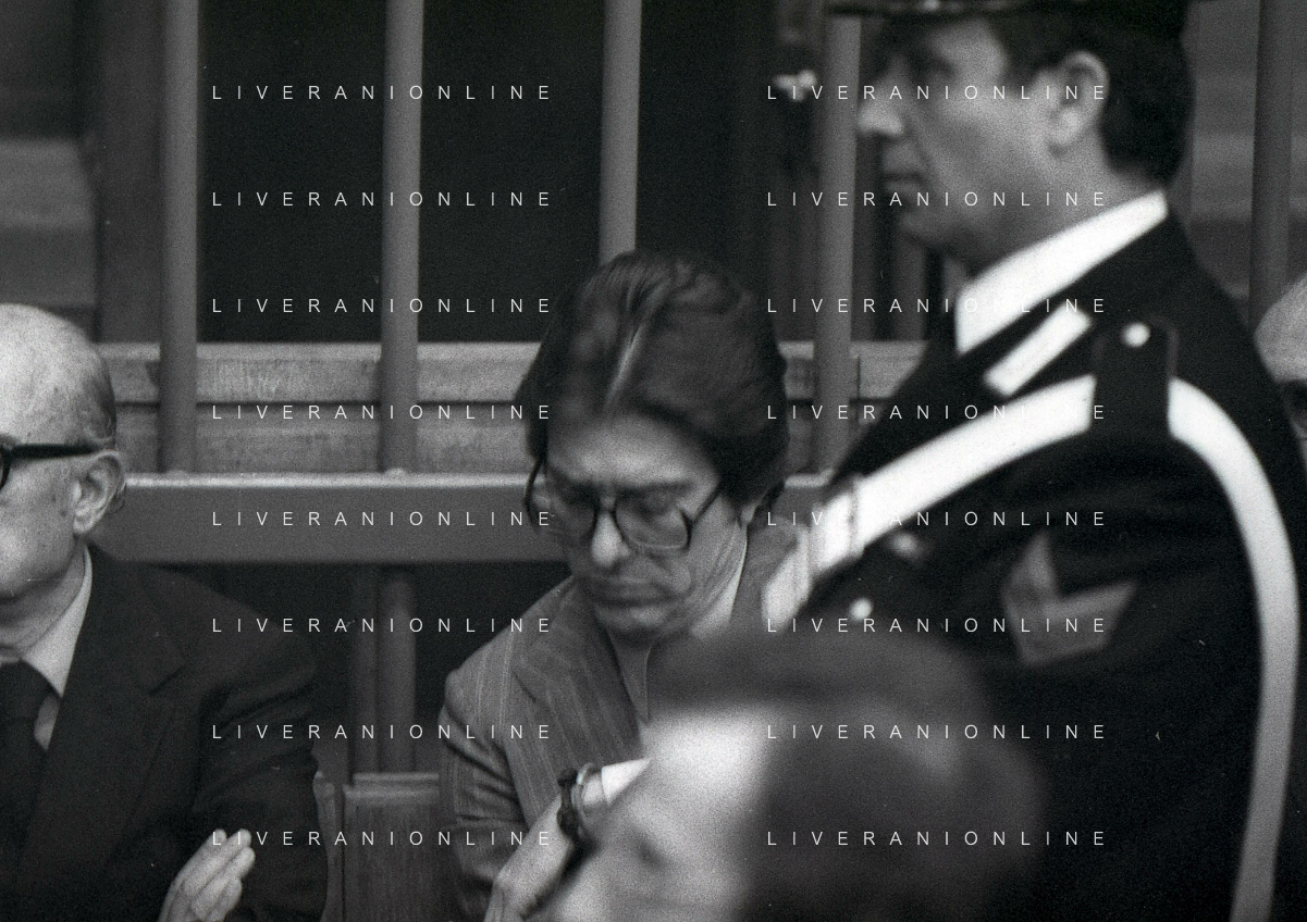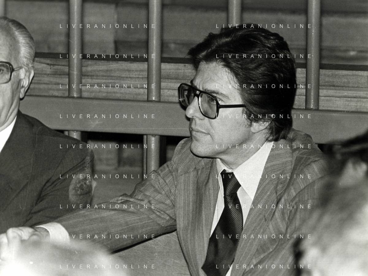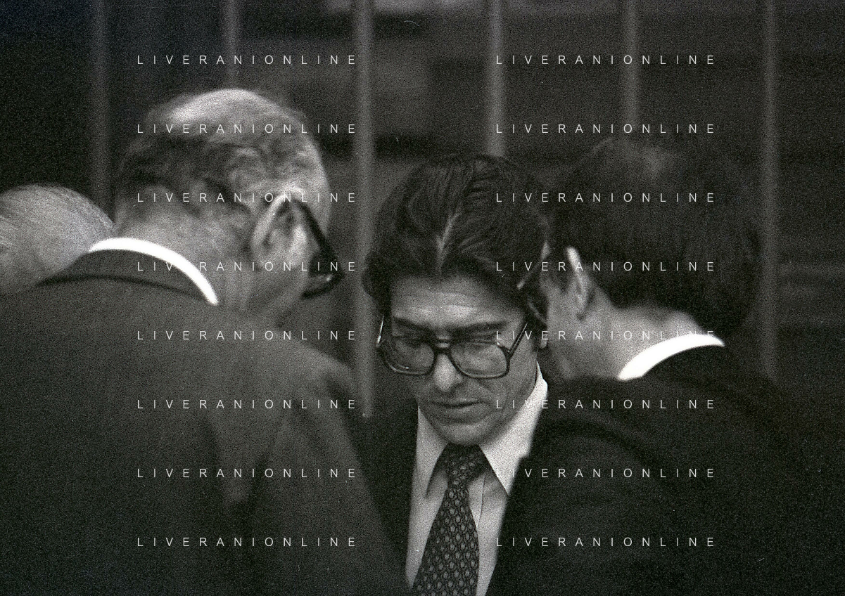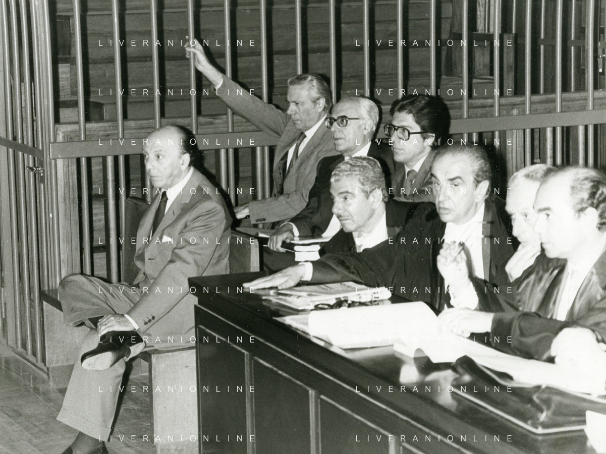 RETROSPETTICA CARLO BONOMI INDUSTRIALE NELLA FOTO CARLO BONOMI IN TRIBUNALE A MILANO PER IL CRAC DEL BANCO AMBROSIANO NELL'ANNO 1980 AG ALDO LIVERANI SAS