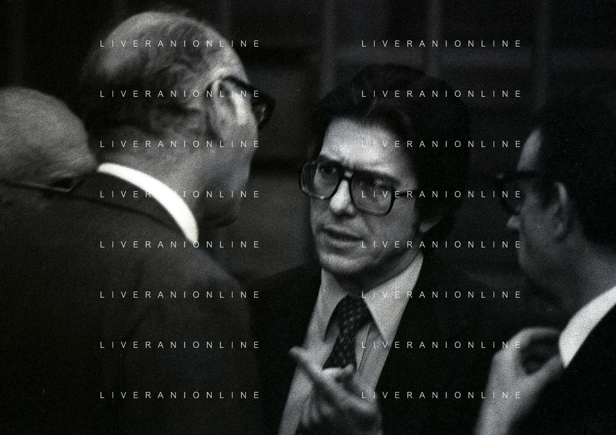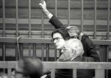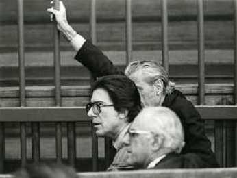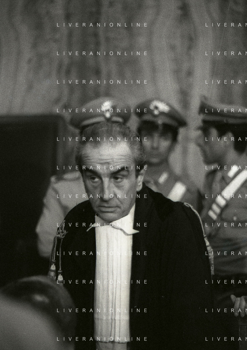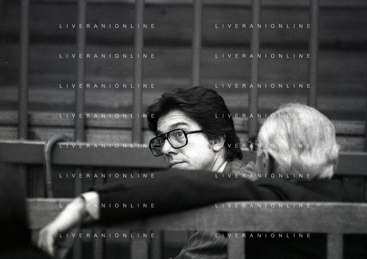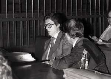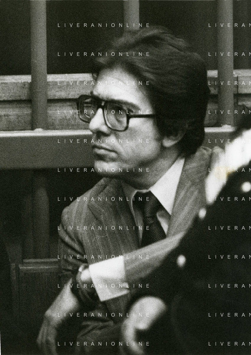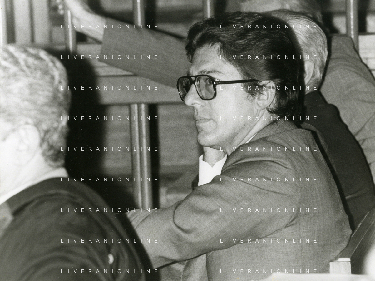 RETROSPETTICA CARLO BONOMI INDUSTRIALE NELLA FOTO CARLO BONOMI IN TRIBUNALE A MILANO PER IL CRAC DEL BANCO AMBROSIANO NELL'ANNO 1980 AG ALDO LIVERANI SAS