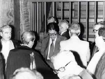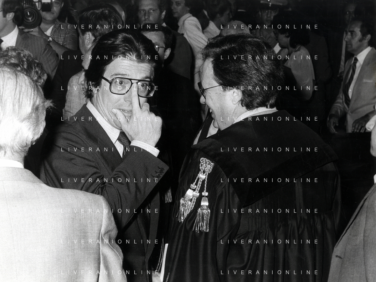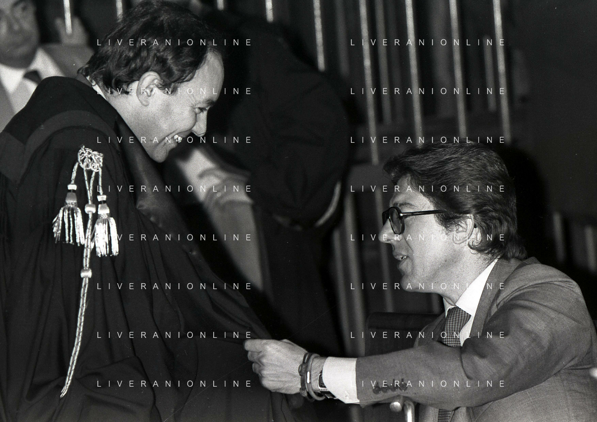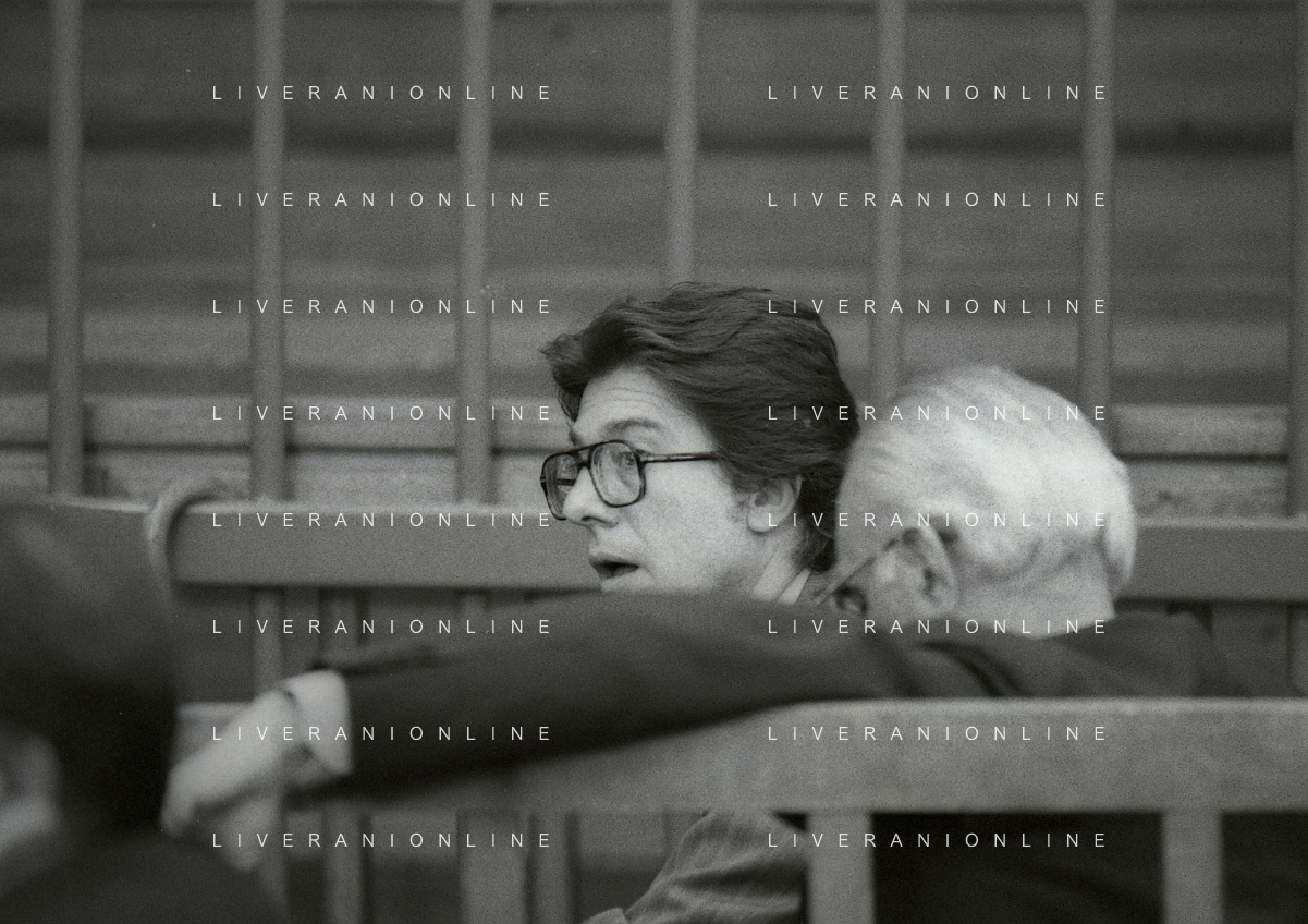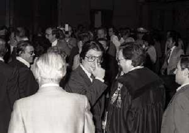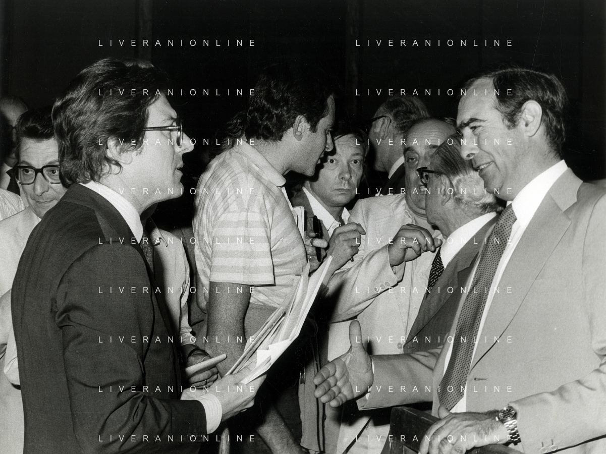 RETROSPETTICA CARLO BONOMI INDUSTRIALE NELLA FOTO CARLO BONOMI IN TRIBUNALE A MILANO PER IL CRAC DEL BANCO AMBROSIANO NELL'ANNO 1980 CON MARIO VALERI MANERA AG ALDO LIVERANI SAS