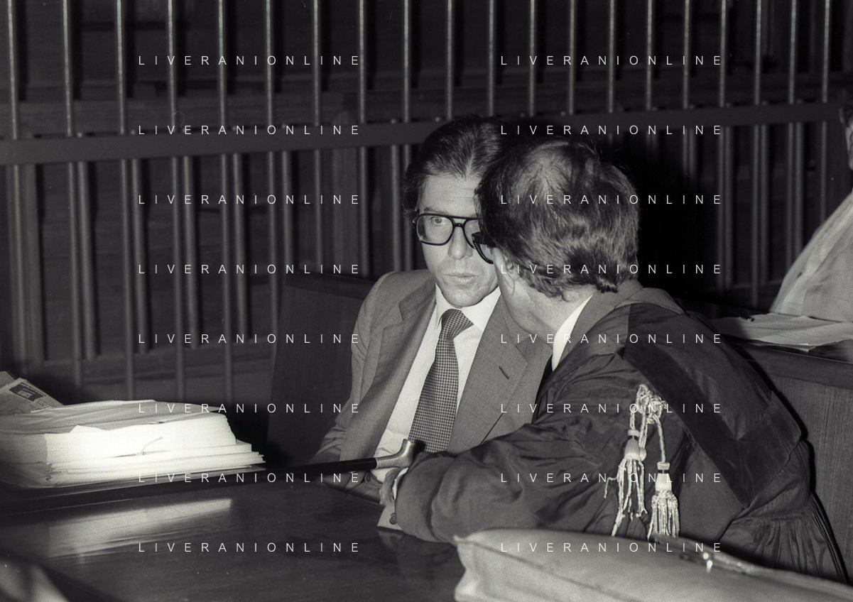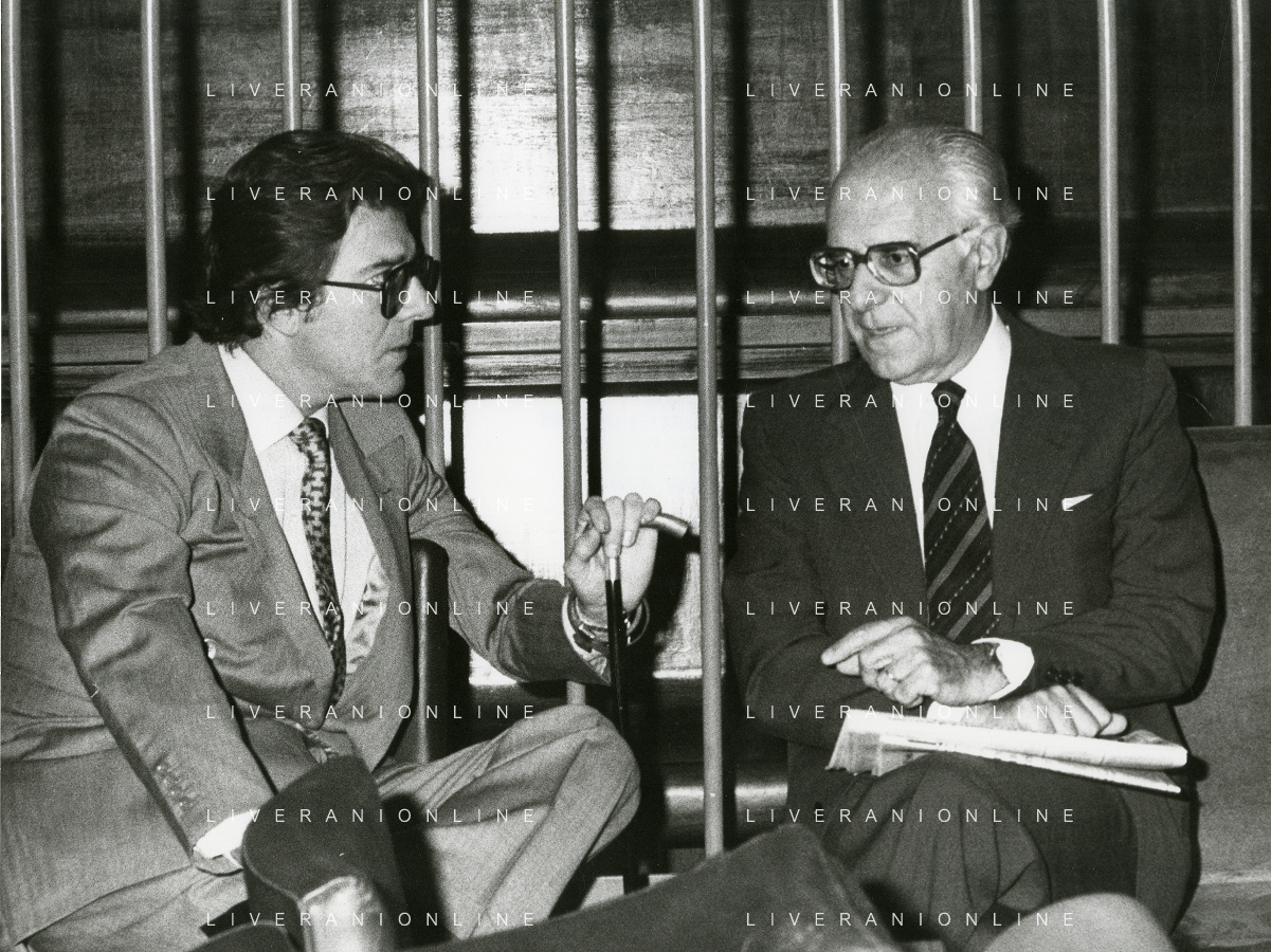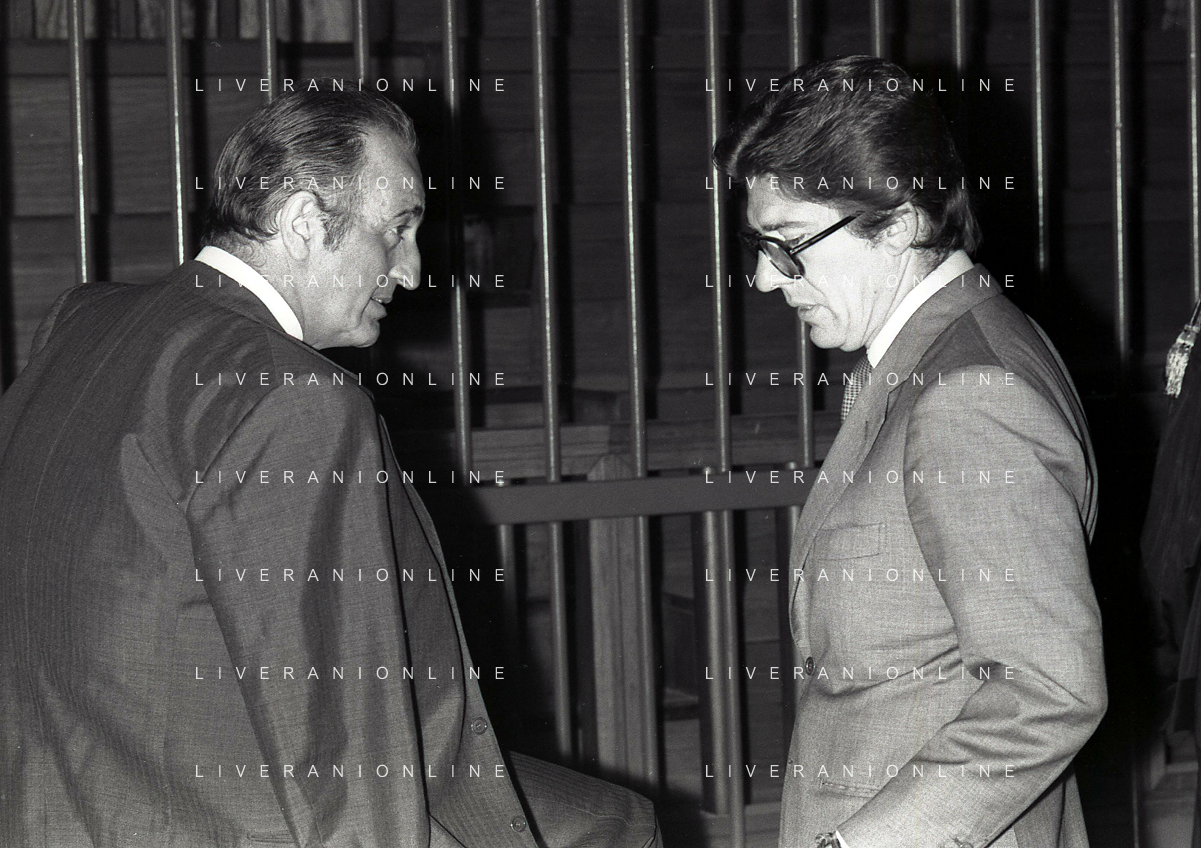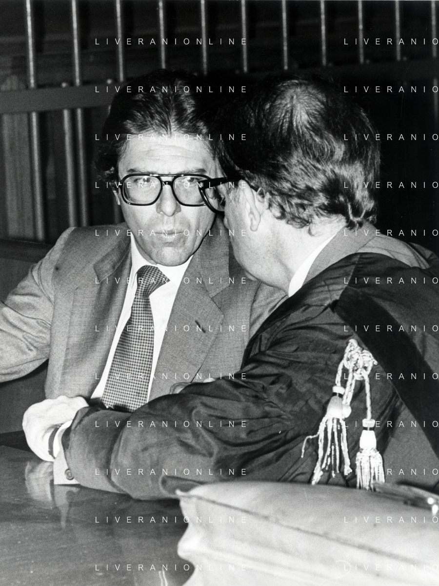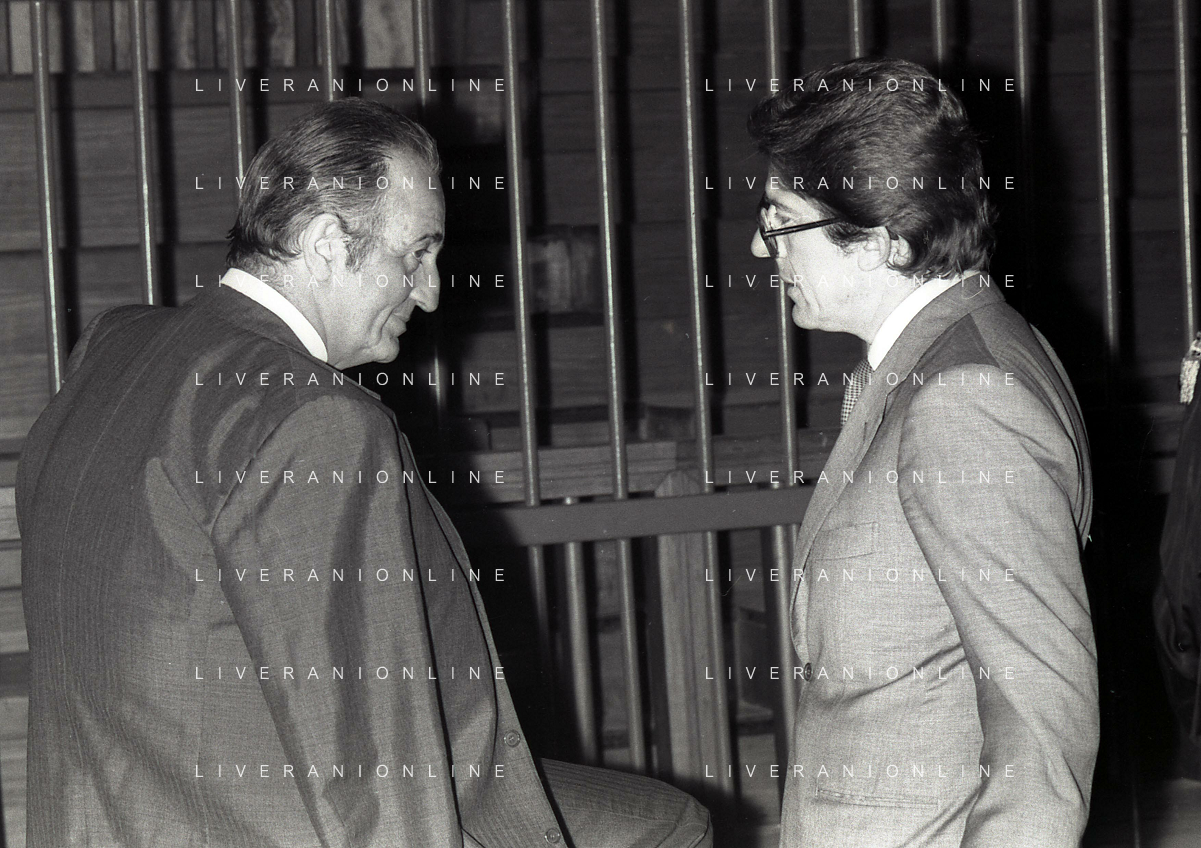 RETROSPETTIVA CARLO BONOMI PRESIDENTE INVEST NELLA FOTO CARLO BONOMI PRESIDENTE INVEST CON MARIO VALERI MANERA NEL PROCESSO DEL BANCO AMBROSIANO DEL PRESIDENTE ROBERTO CALVI DURANTE LE UDIENZE IN TRIBUNALE NELL'ANNO 1981 AG ALDO LIVERANI SAS