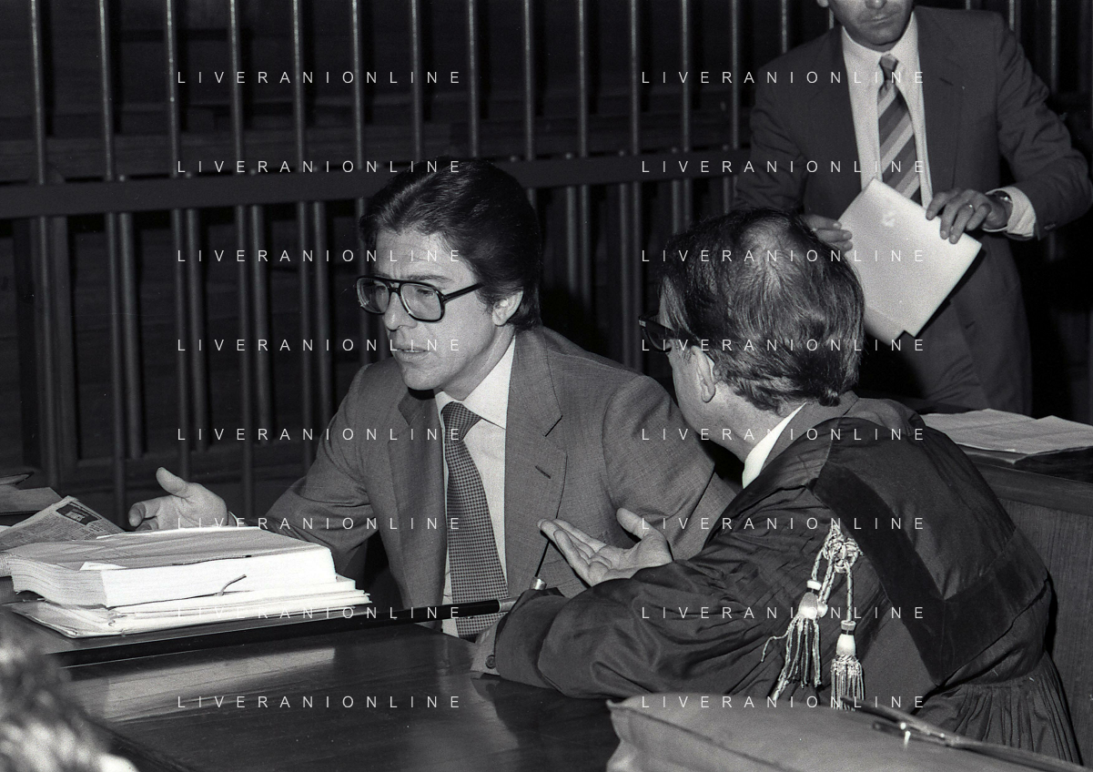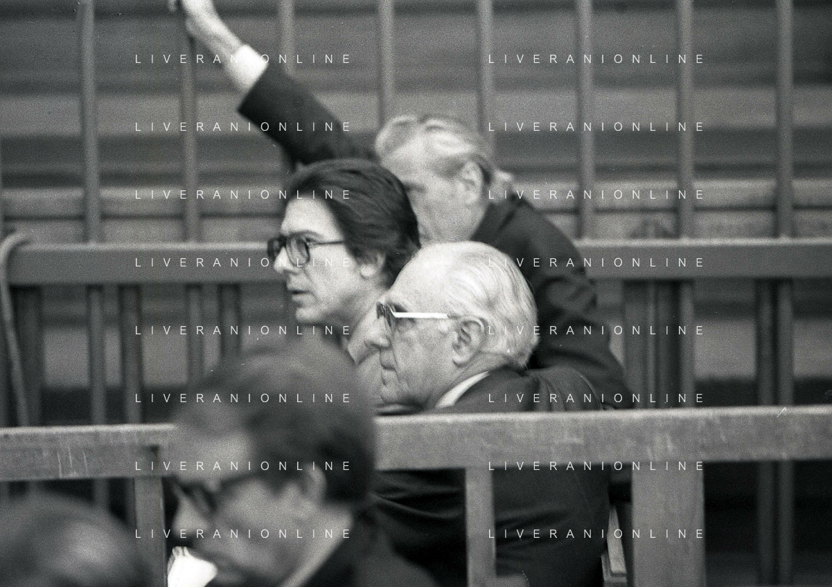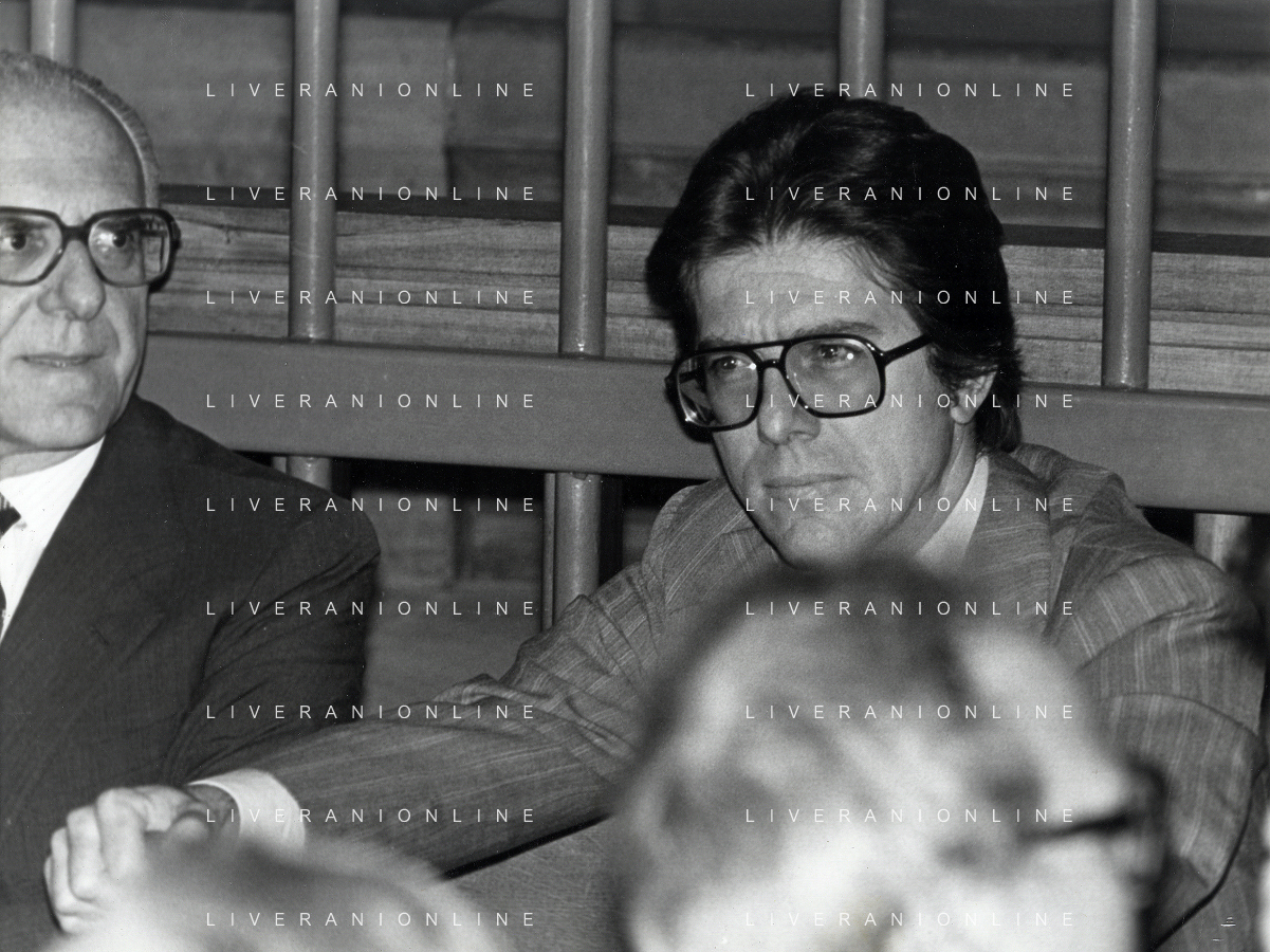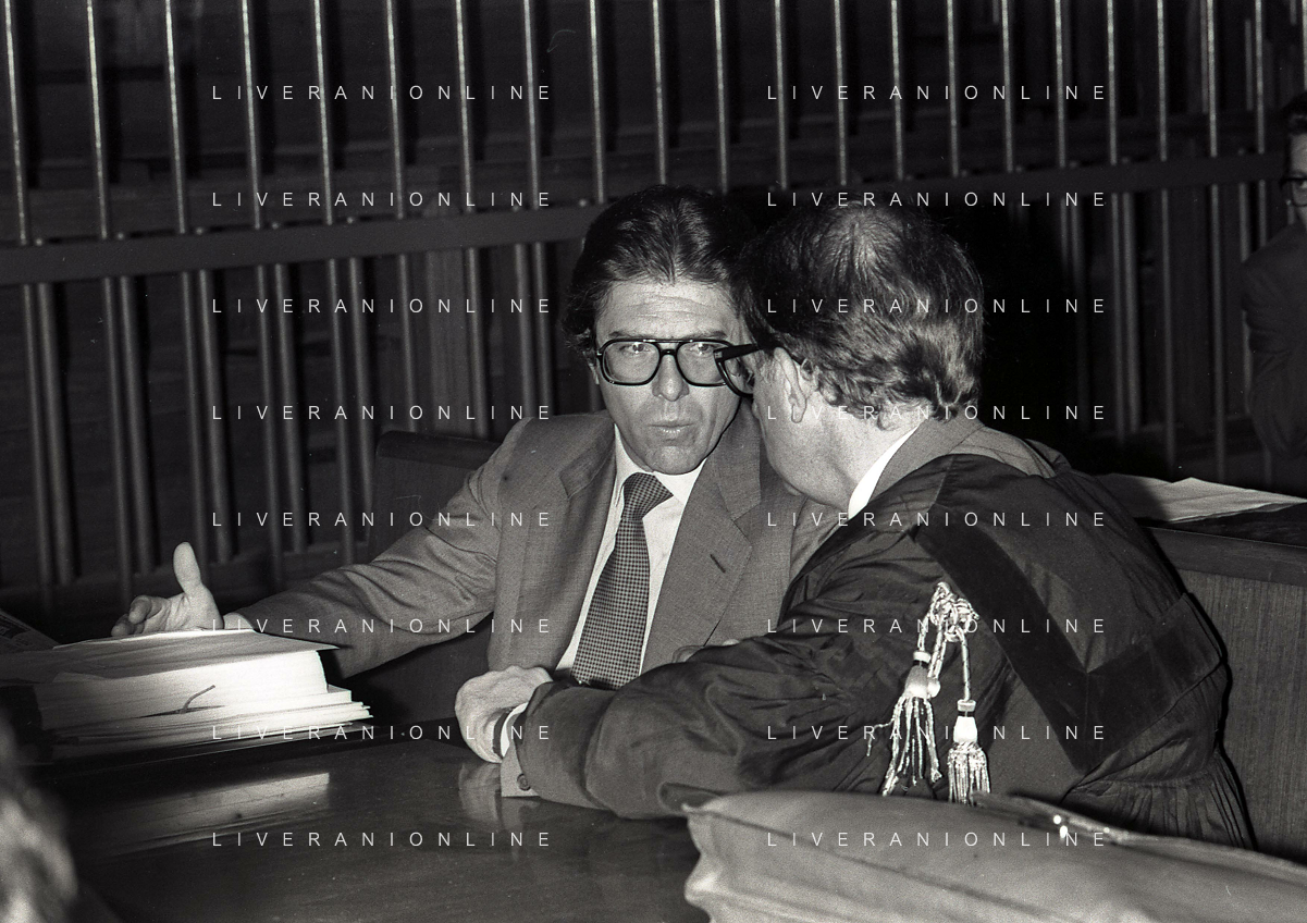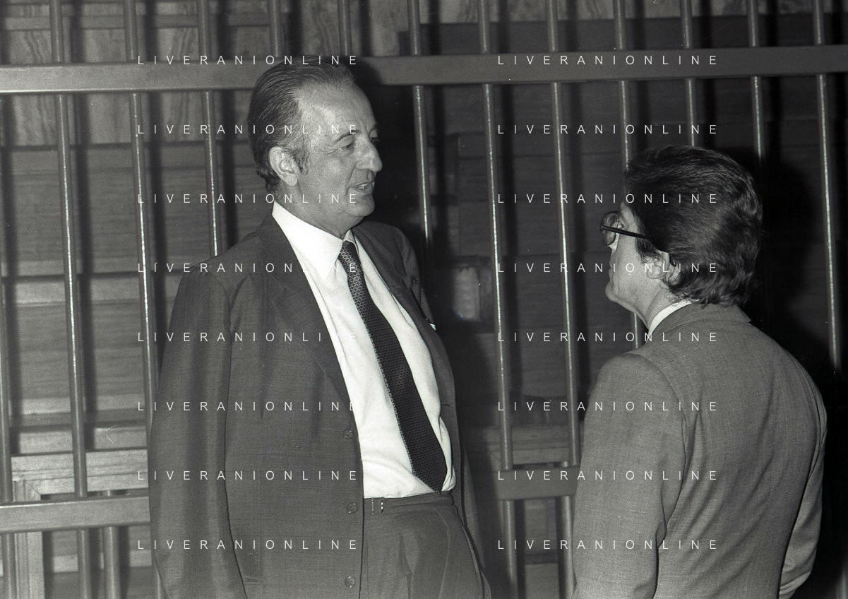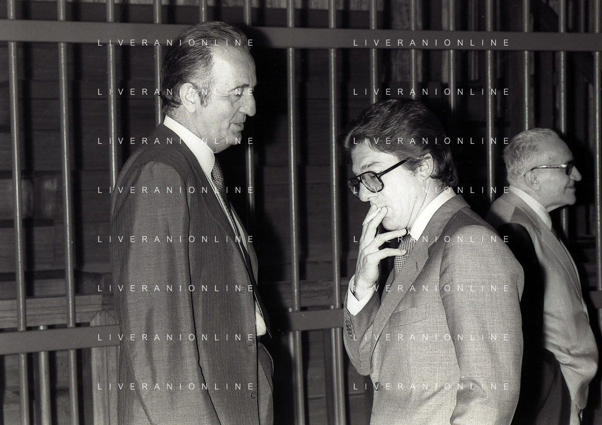 RETROSPETTIVA CARLO BONOMI PRESIDENTE INVEST NELLA FOTO CARLO BONOMI PRESIDENTE INVEST CON MARIO VALERI MANERA NEL PROCESSO DEL BANCO AMBROSIANO DEL PRESIDENTE ROBERTO CALVI DURANTE LE UDIENZE IN TRIBUNALE NELL'ANNO 1981 AG ALDO LIVERANI SAS