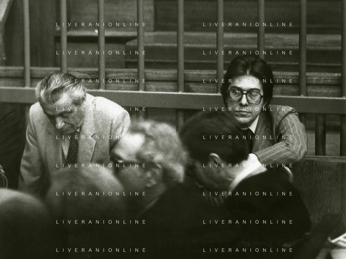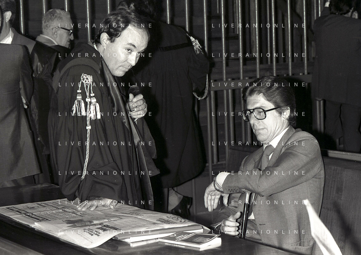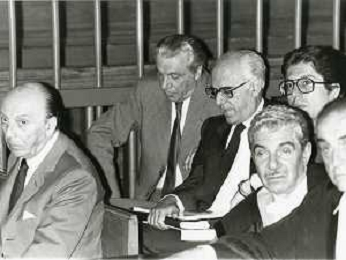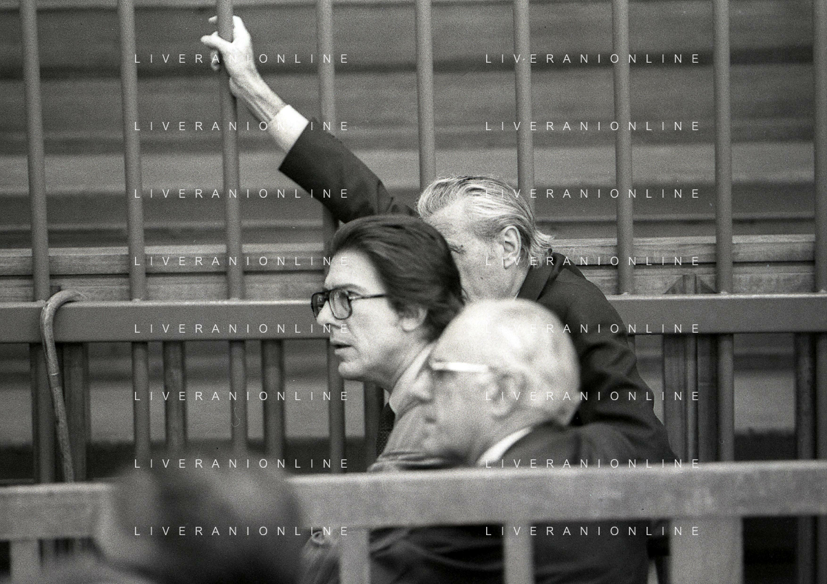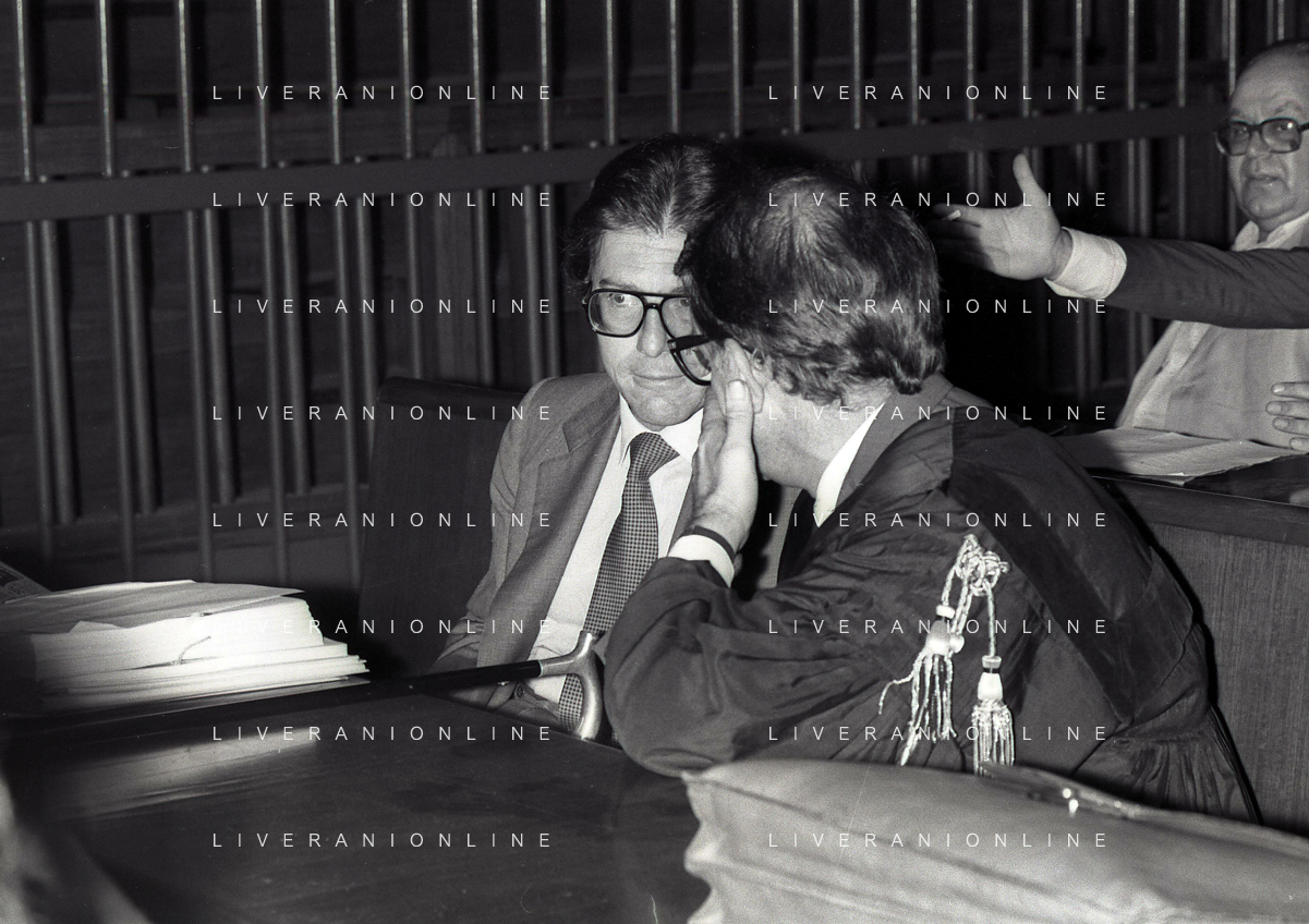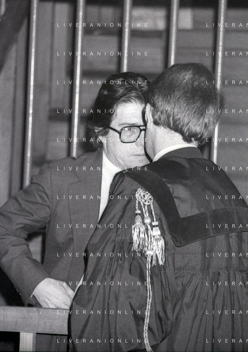 RETROSPETTIVA CARLO BONOMI PRESIDENTE INVEST NELLA FOTO CARLO BONOMI PRESIDENTE INVEST CON MARIO VALERI MANERA NEL PROCESSO DEL BANCO AMBROSIANO DEL PRESIDENTE ROBERTO CALVI DURANTE LE UDIENZE IN TRIBUNALE NELL'ANNO 1981 AG ALDO LIVERANI SAS
